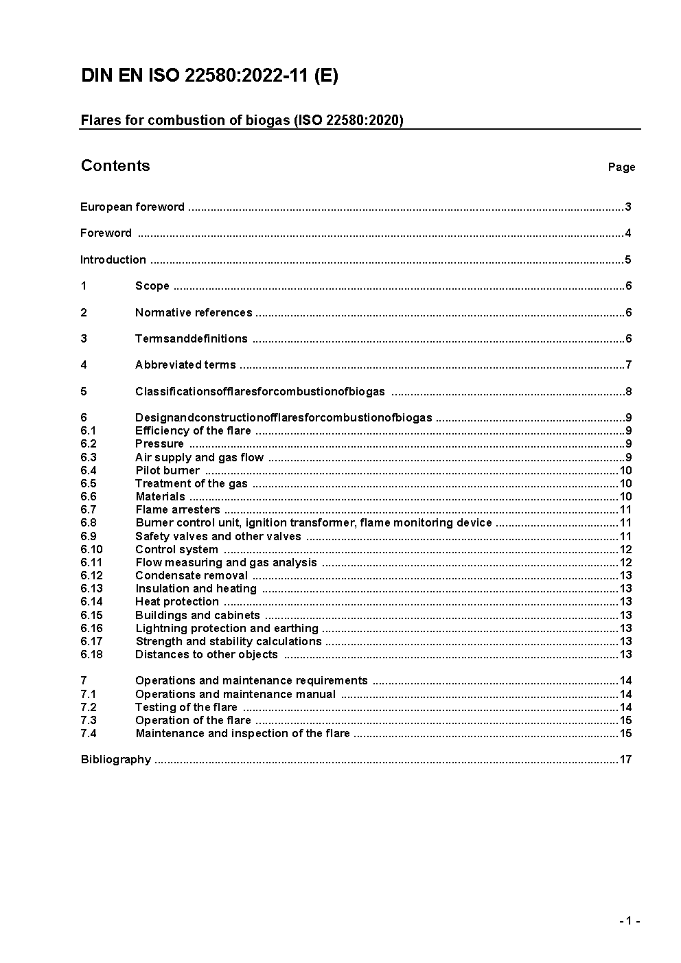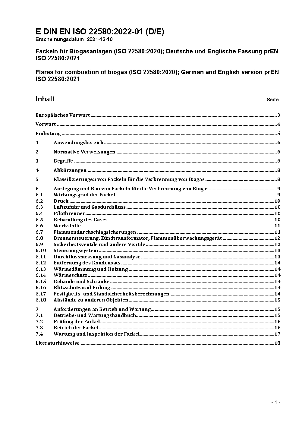 Flares for combustion of biogas (ISO 22580:2020); German and English version prEN ISO 22580:2021