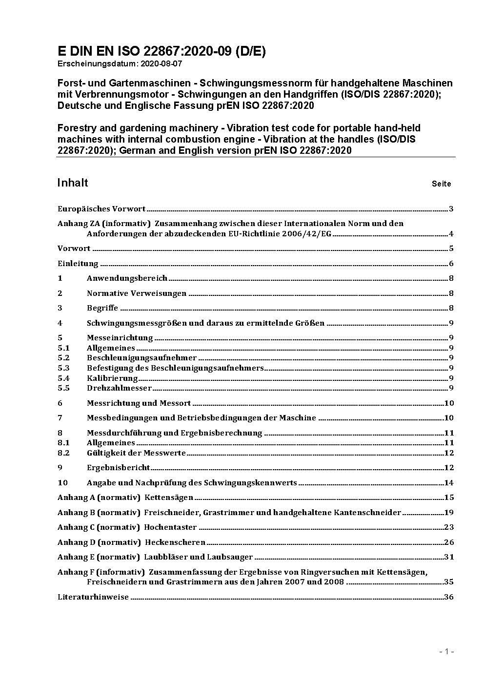 Forst- und Gartenmaschinen - Schwingungsmessnorm für handgehaltene Maschinen mit Verbrennungsmotor - Schwingungen an den Handgriffen (ISO 22867:2011); Deutsche Fassung EN ISO 22867:2011
