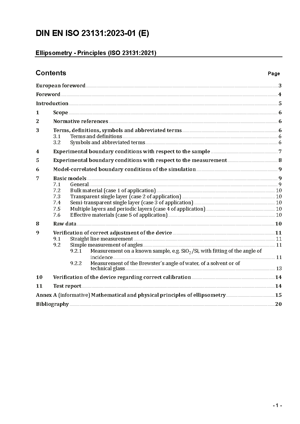 Ellipsometry - Principles (ISO 23131:2021); German and English version prEN ISO 23131:2022