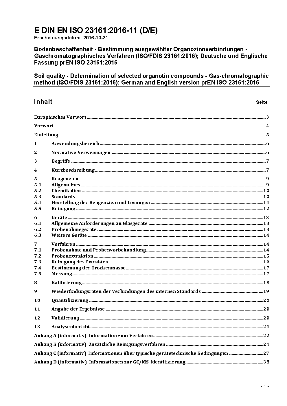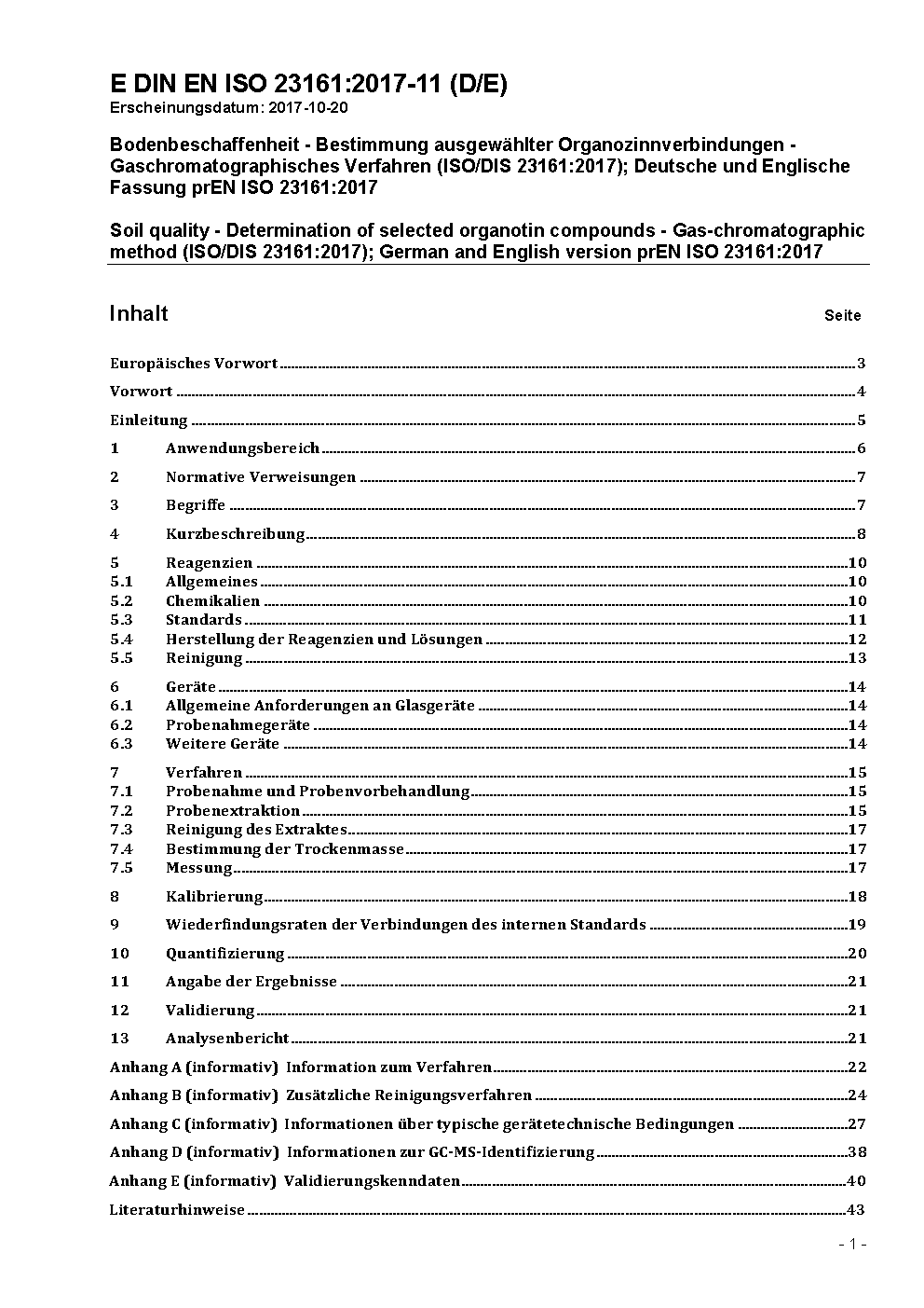 Bodenbeschaffenheit - Bestimmung ausgewählter Organozinnverbindungen - Gaschromatographisches Verfahren (ISO 23161:2009); Deutsche Fassung EN ISO 23161:2011