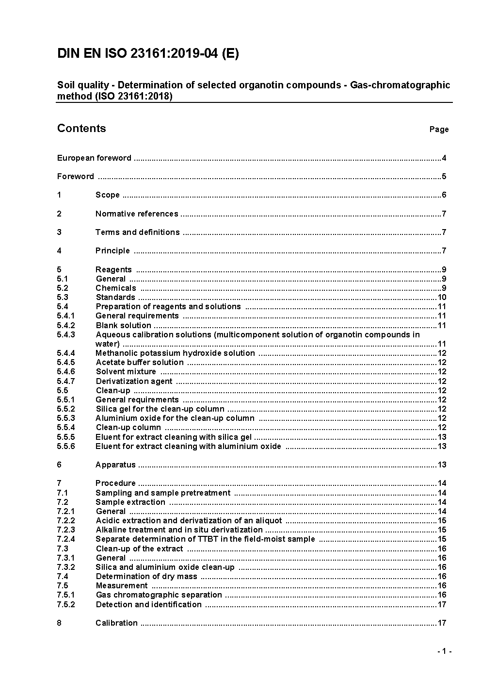 Soil quality - Determination of selected organotin compounds - Gas-chromatographic method (ISO 23161:2009); German version EN ISO 23161:2011