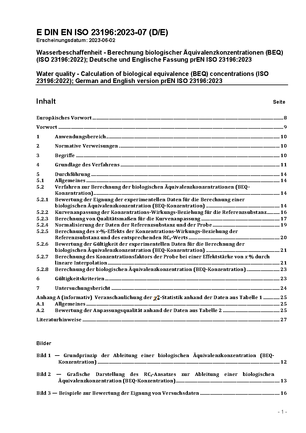 Wasserbeschaffenheit - Berechnung biologischer Äquivalenzkonzentrationen (BEQ) (ISO 23196:2022); Deutsche Fassung EN ISO 23196:2023