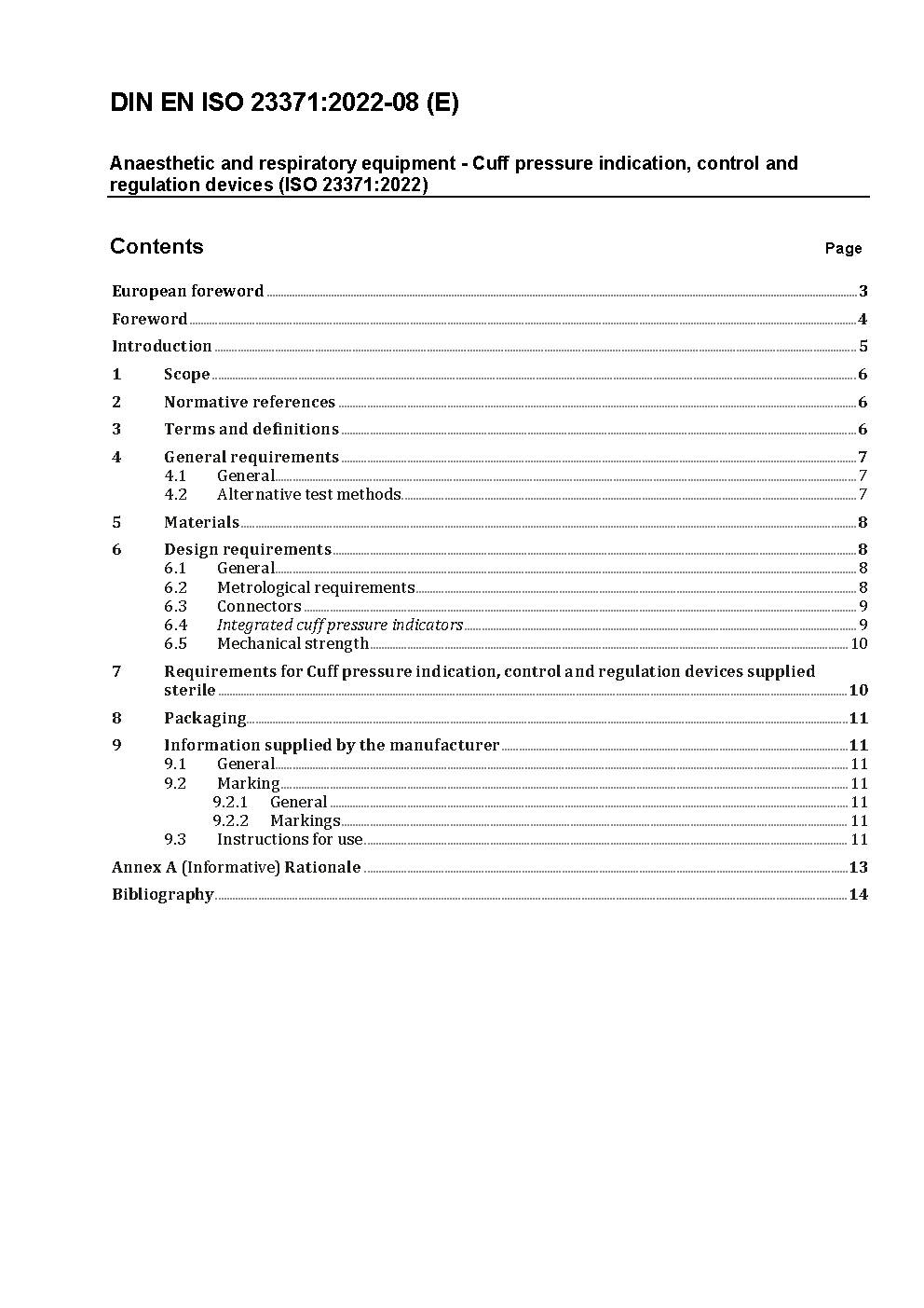 Anaesthetic and respiratory equipment - Cuff pressure indication, control and regulation devices (ISO 23371:2022); German version EN ISO 23371:2022