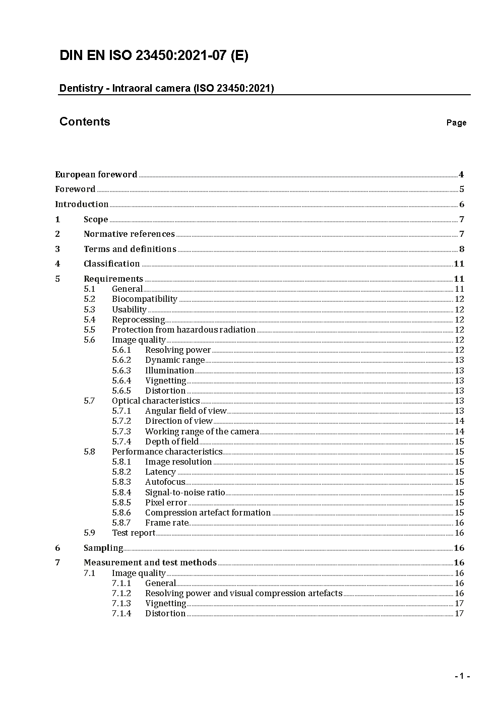 Dentistry - Intraoral camera (ISO 23450:2021); German version EN ISO 23450:2021