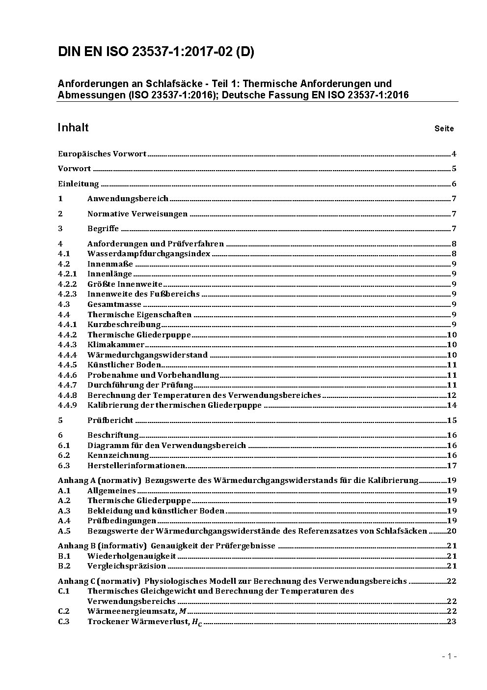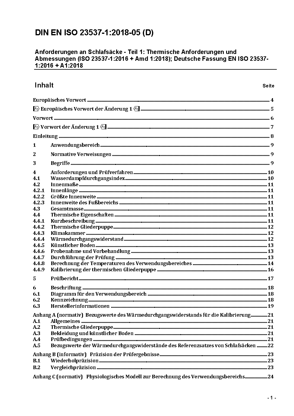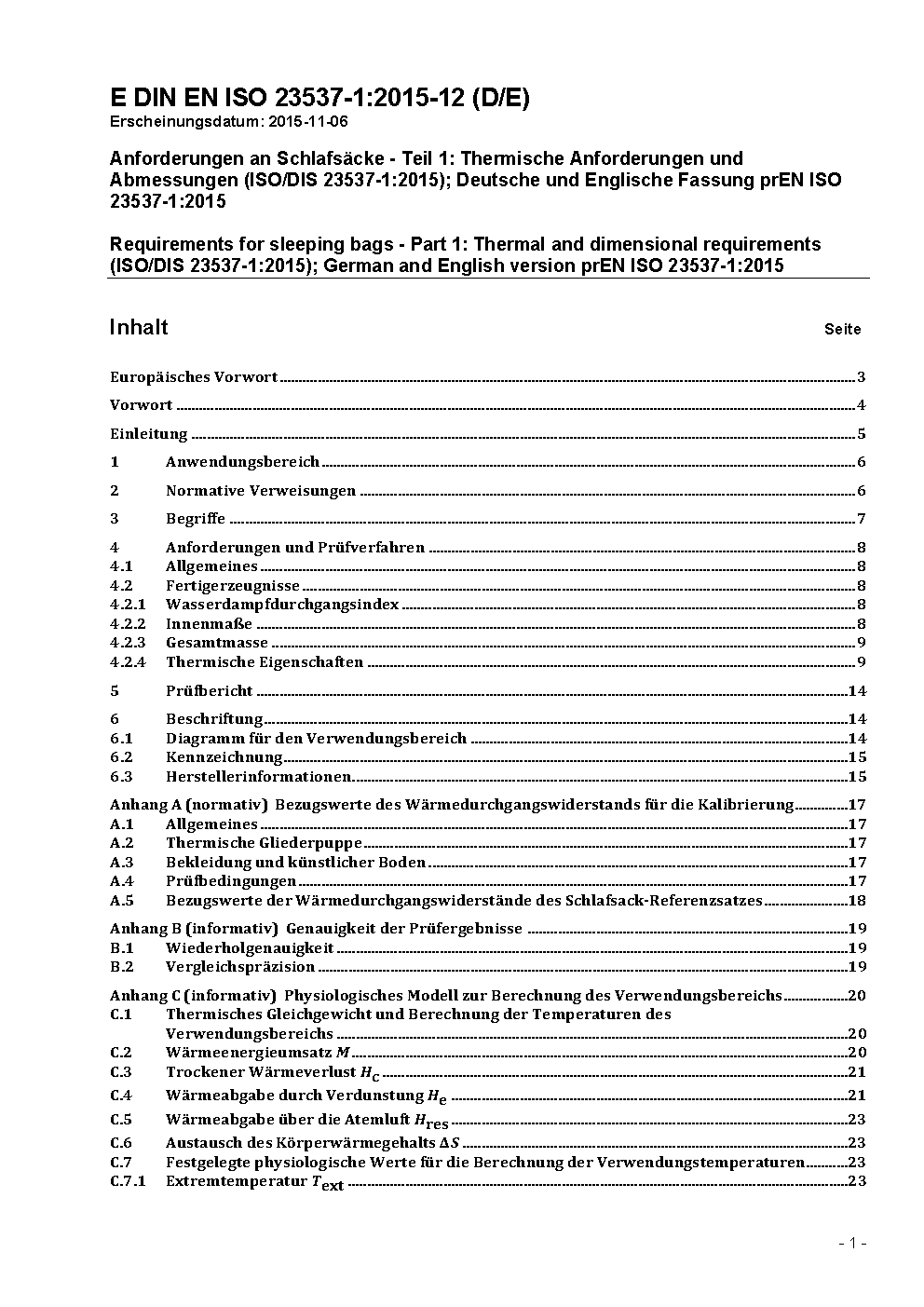 Anforderungen an Schlafsäcke - Teil 1: Thermische Anforderungen und Abmessungen (ISO 23537-1:2016/DAM 1:2017); Deutsche und Englische Fassung EN ISO 23537-1:2016/prA1:2017