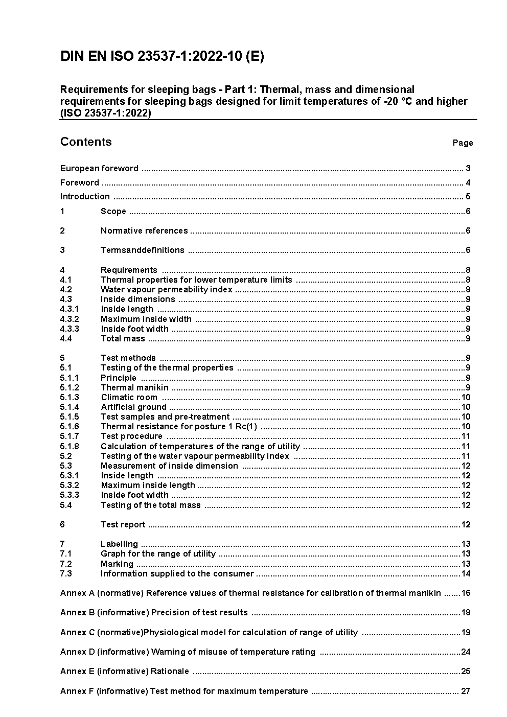 Requirements for sleeping bags - Part 1: Thermal and dimensional requirements (ISO 23537-1:2016/DAM 1:2017); German and English version EN ISO 23537-1:2016/prA1:2017