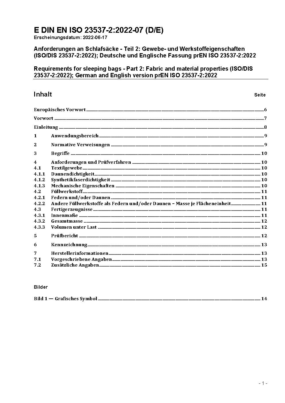 Requirements for sleeping bags - Part 2: Fabric and material properties (ISO 23537-2:2023); German version EN ISO 23537-2:2023