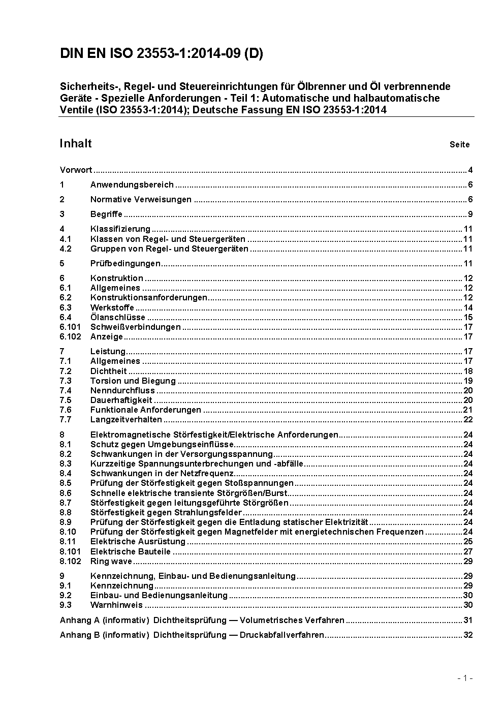 Sicherheits-, Regel- und Steuereinrichtungen für Ölbrenner und Öl verbrennende Geräte - Spezielle Anforderungen - Teil 1: Automatische und halbautomatische Ventile (ISO 23553-1:2014); Deutsche Fassung EN ISO 23553-1:2014