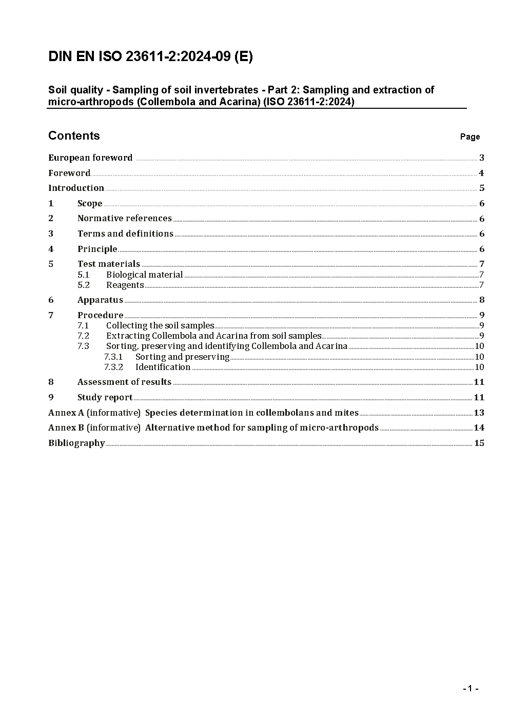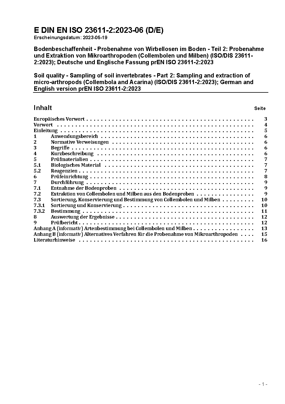 Bodenbeschaffenheit - Probenahme von Wirbellosen im Boden - Teil 2: Probenahme und Extraktion von Mikroarthropoden (Collembolen und Milben) (ISO/DIS 23611-2:2023); Deutsche und Englische Fassung prEN ISO 23611-2:2023