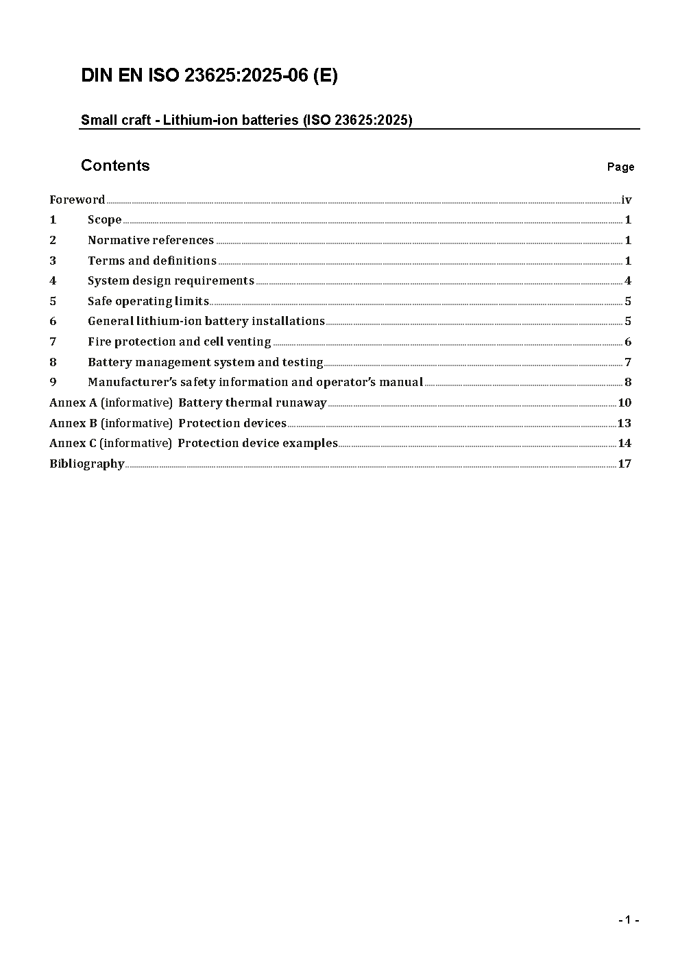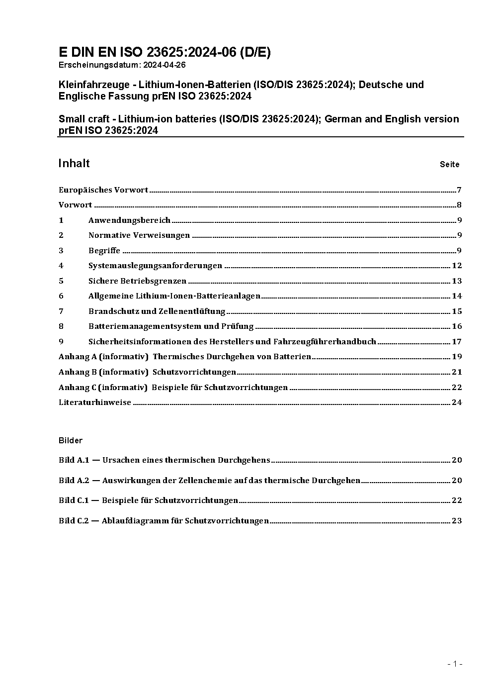 Small craft - Lithium-ion batteries (ISO/DIS 23625:2024); German and English version prEN ISO 23625:2024