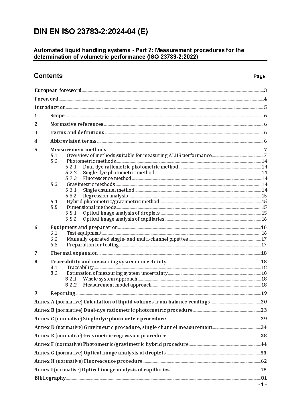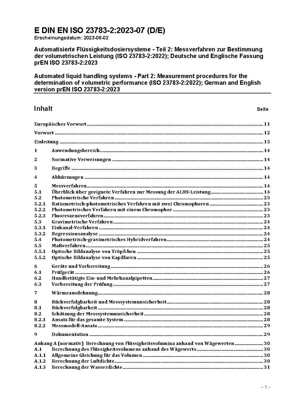 Automated liquid handling systems - Part 2: Measurement procedures for the determination of volumetric performance (ISO 23783-2:2022); German and English version prEN ISO 23783-2:2023