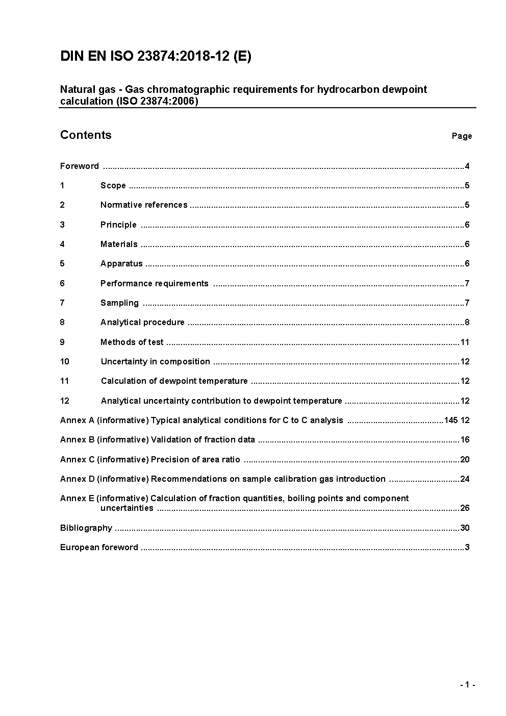 Natural gas - Gas chromatographic requirements for hydrocarbon dewpoint calculation (ISO 23874:2006); German and English version prEN ISO 23874:2016