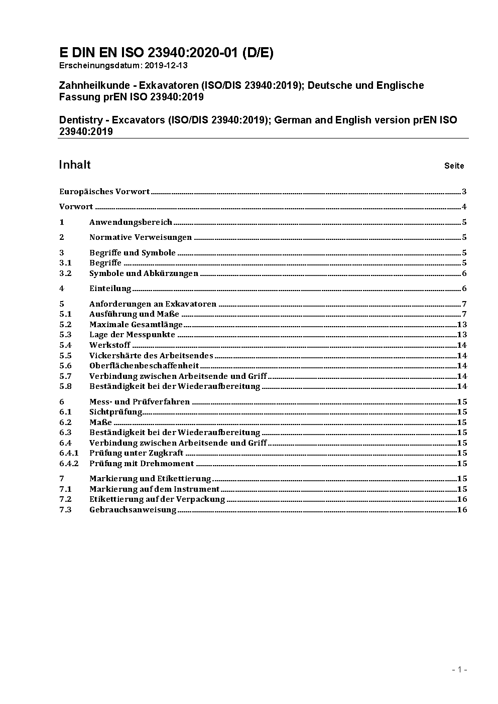 Dentistry - Excavators (ISO 23940:2021); German version EN ISO 23940:2021