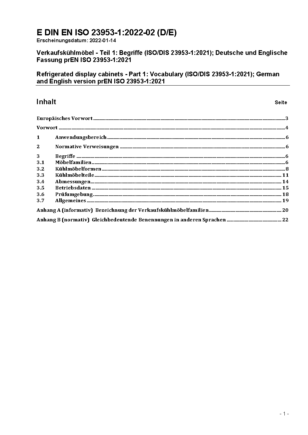 Verkaufskühlmöbel - Teil 1: Begriffe (ISO/DIS 23953-1:2003); Deutsche Fassung prEN ISO 23953-1:2003