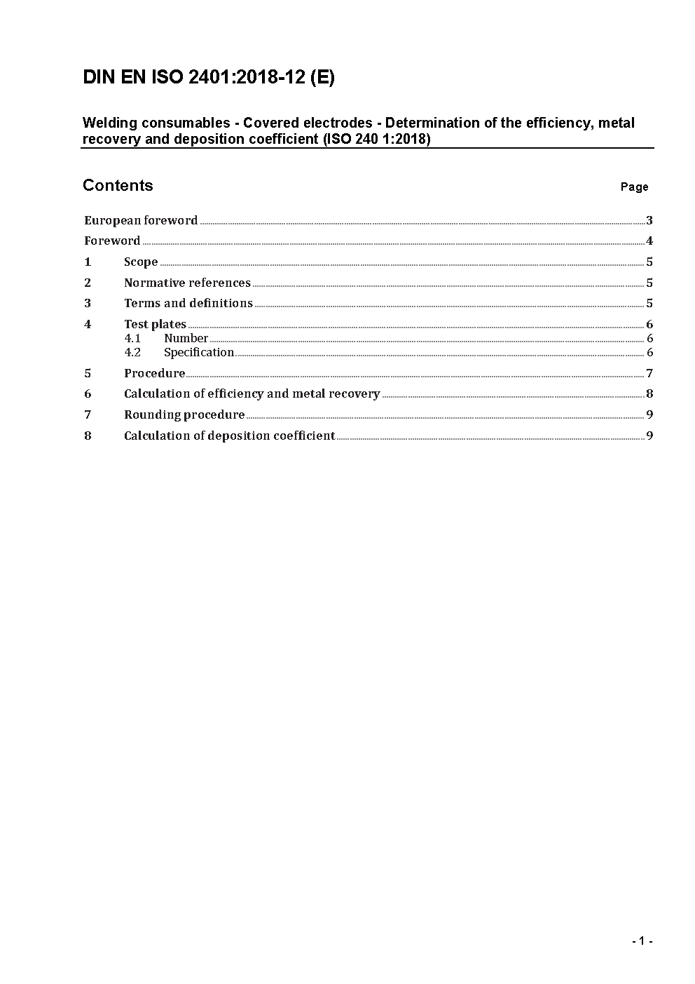 Welding consumables - Covered electrodes - Determination of the efficiency, metal recovery and deposition coefficient (ISO/DIS 2401:2017); German and English version prEN ISO 2401:2017