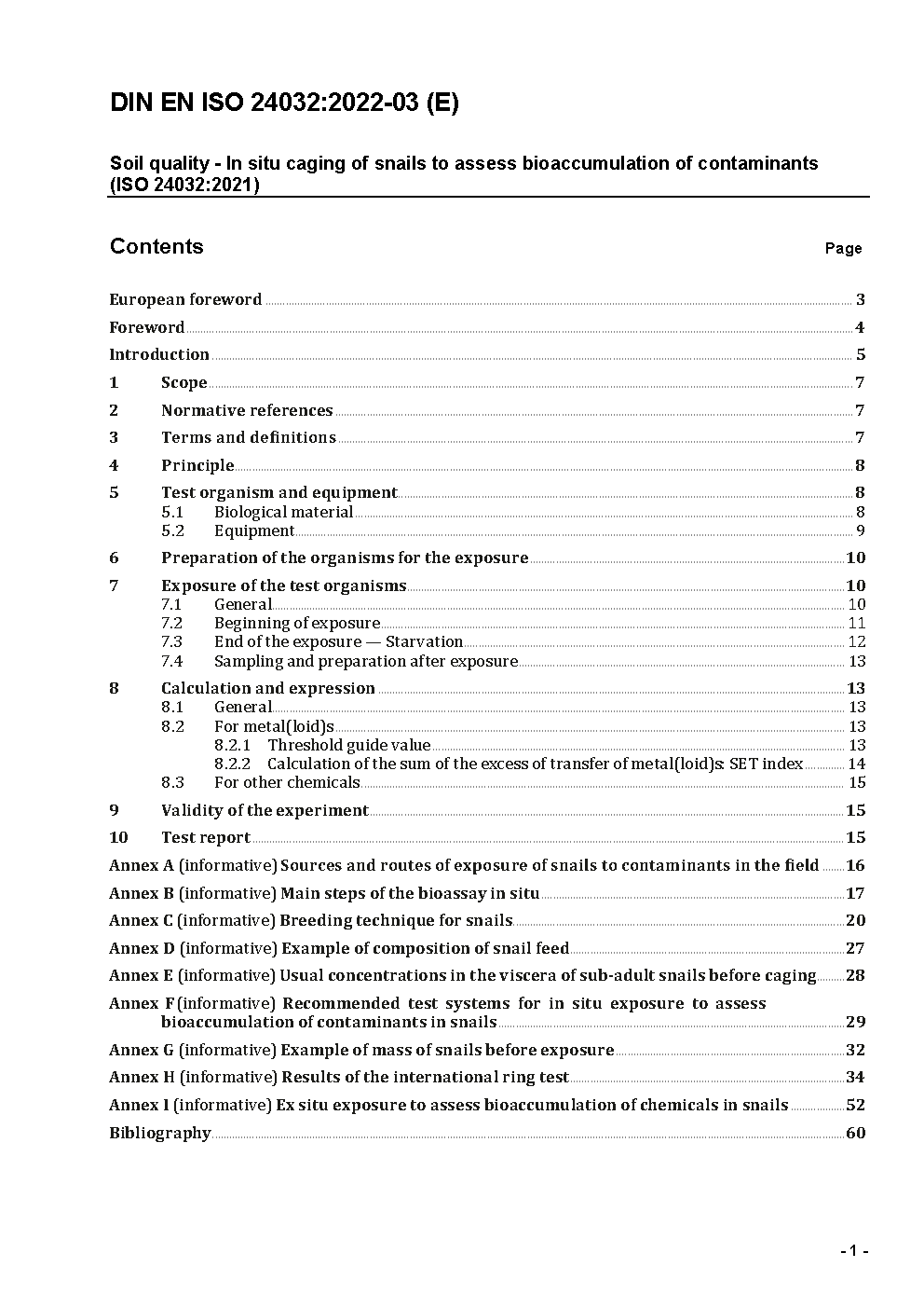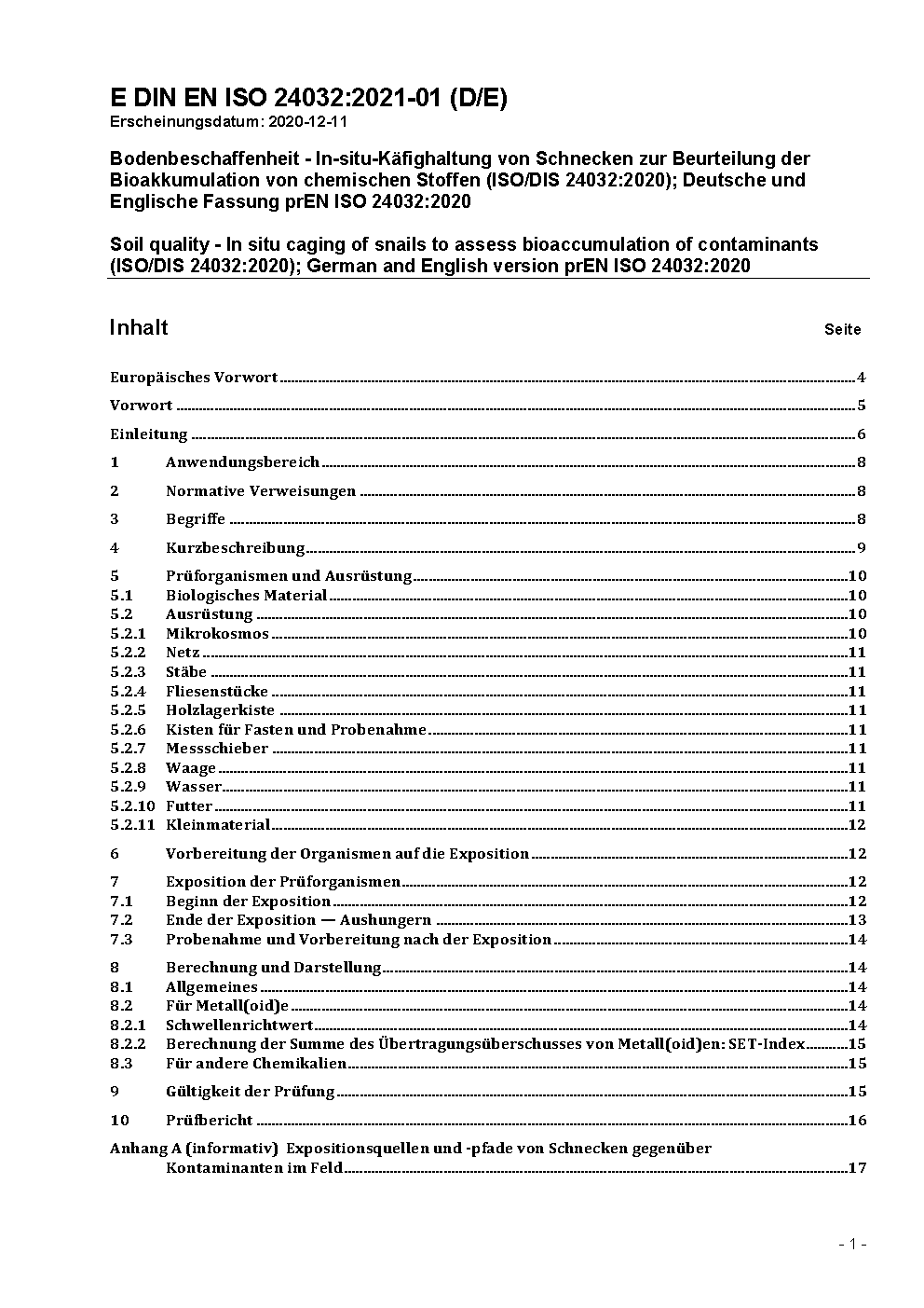 Bodenbeschaffenheit - In-situ-Käfighaltung von Schnecken zur Beurteilung der Bioakkumulation von Kontaminanten (ISO 24032:2021); Deutsche Fassung EN ISO 24032:2021