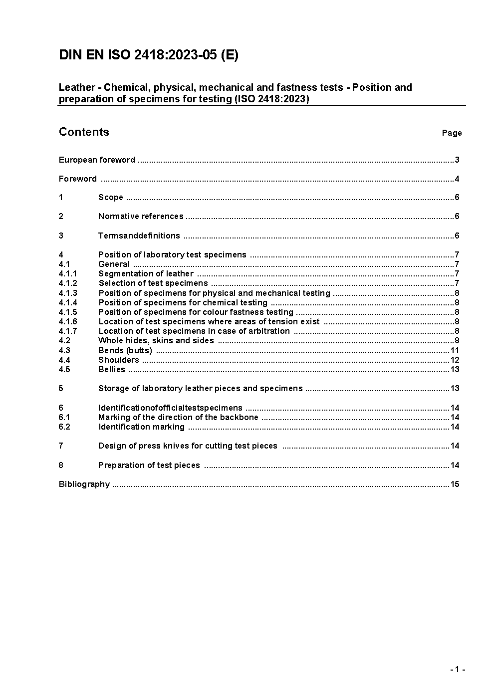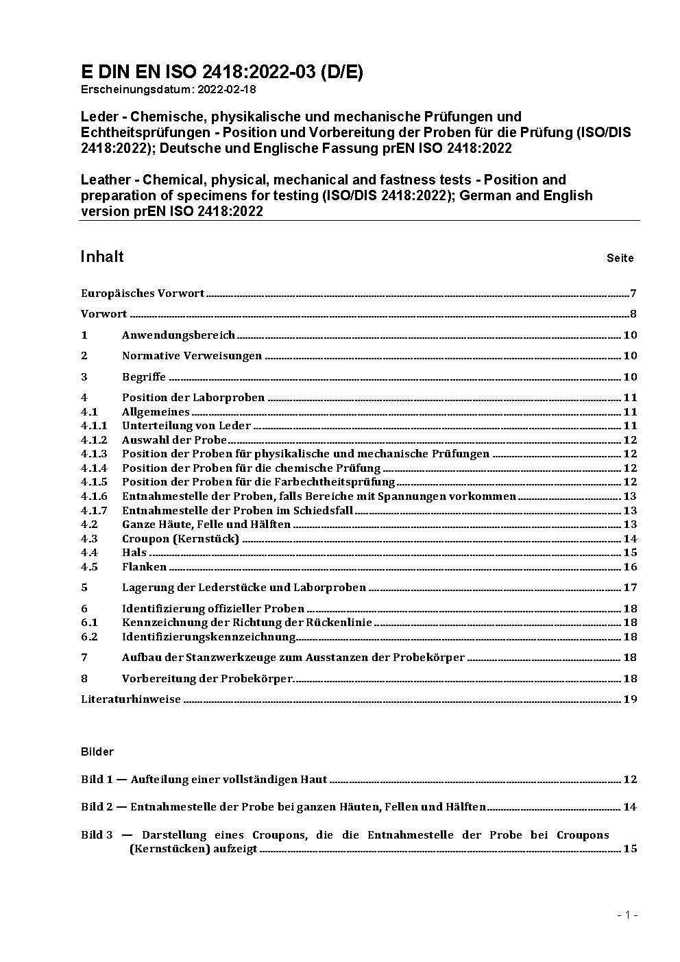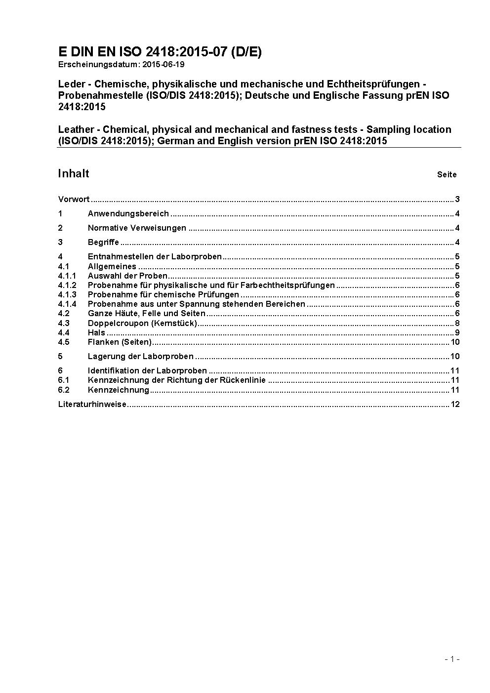 Leder - Chemische, physikalische und mechanische Prüfungen und Echtheitsprüfungen - Probenahmestelle (ISO 2418:2017); Deutsche Fassung EN ISO 2418:2017