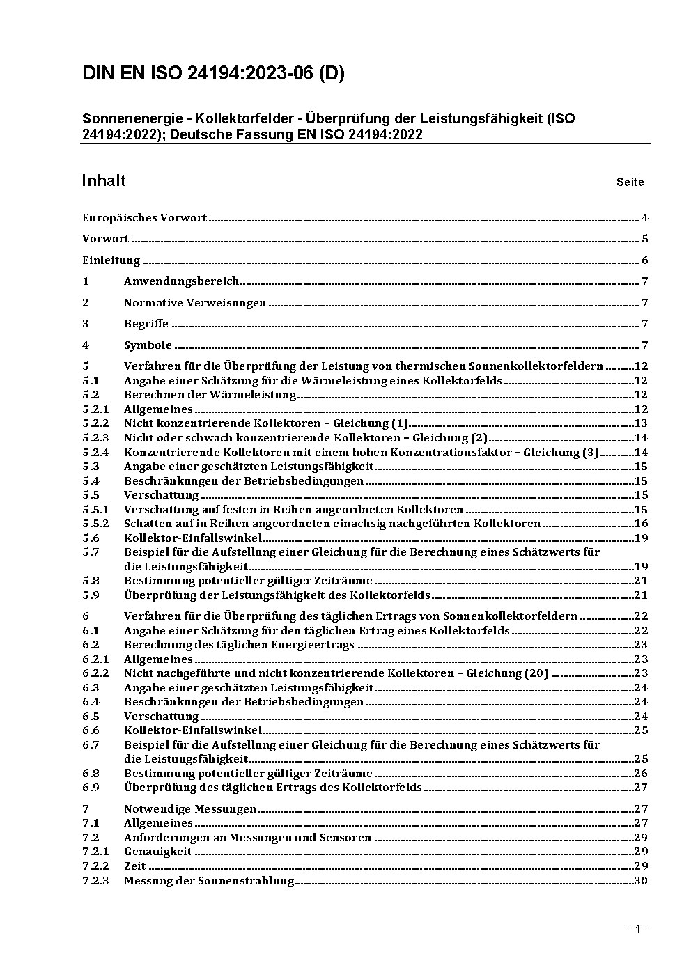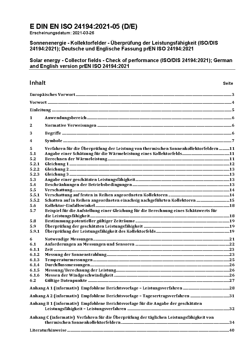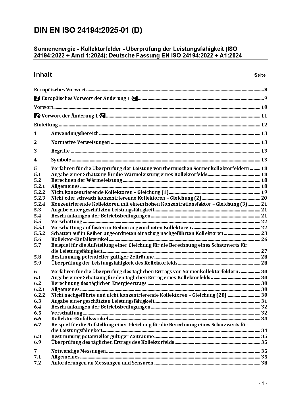 Sonnenenergie - Kollektorfelder - Überprüfung der Leistungsfähigkeit - Änderung 1 (ISO 24194:2022/DAM 1:2023); Deutsche und Englische Fassung EN ISO 24194:2022/prA1:2023