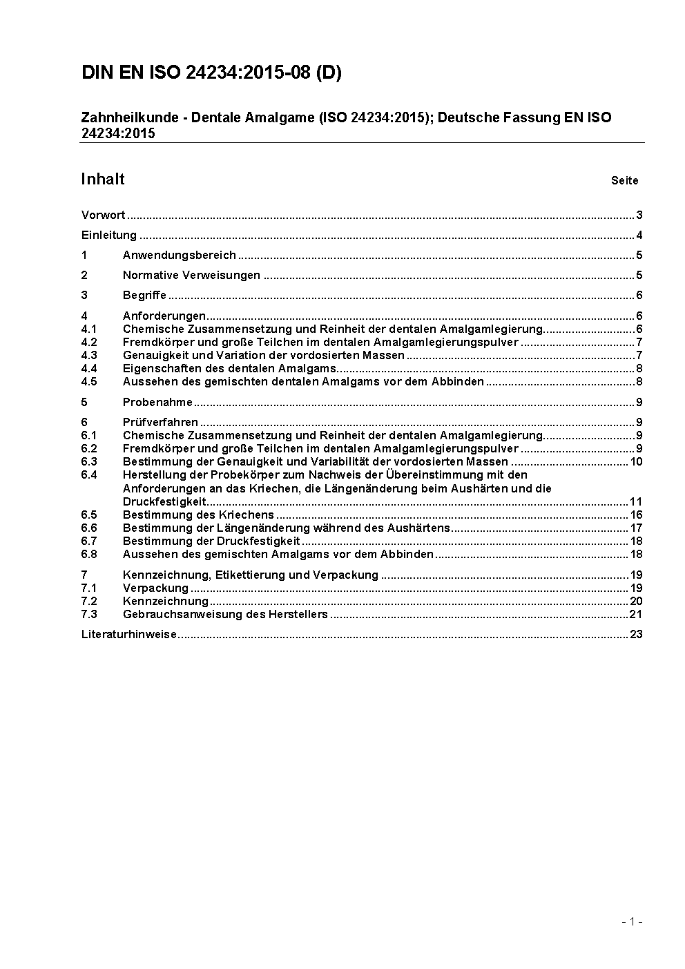 Dentistry - Dental amalgam (ISO 24234:2015); German version EN ISO 24234:2015