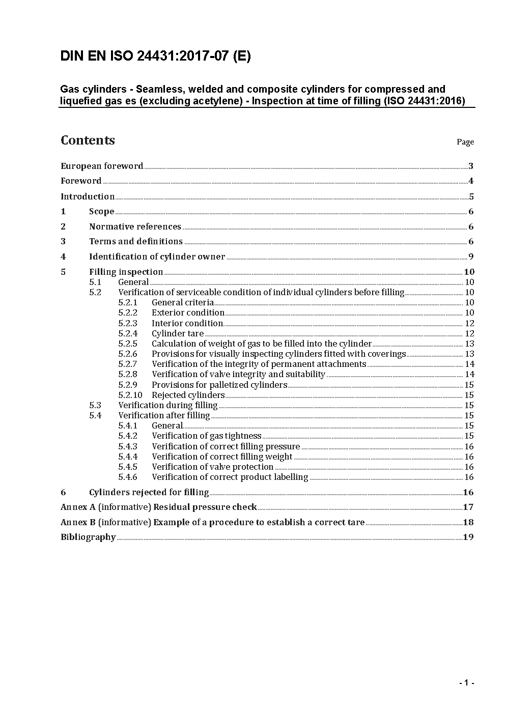 Gas cylinders - Seamless, welded and composite cylinders for compressed and liquefied gases (excluding acetylene) - Inspection at time of filling (ISO 24431:2016); German version EN ISO 24431:2016