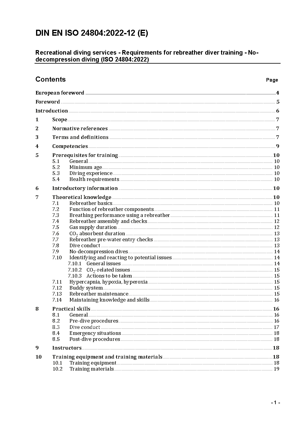 Recreational diving services - Requirements for rebreather diver training - No-decompression diving (ISO 24804:2022); German version EN ISO 24804:2022/A11:2024