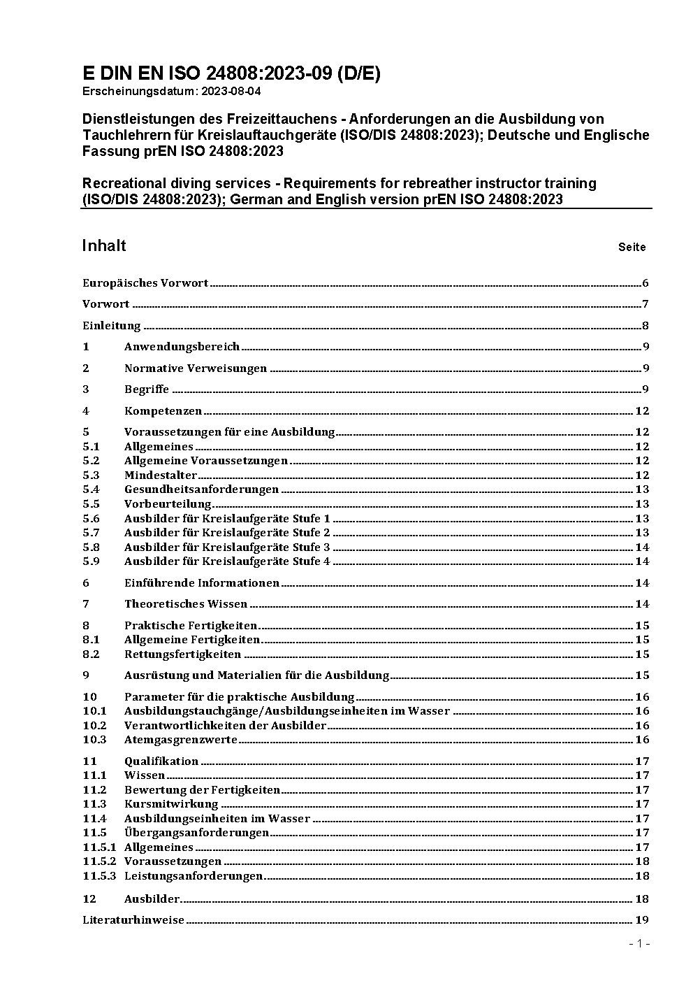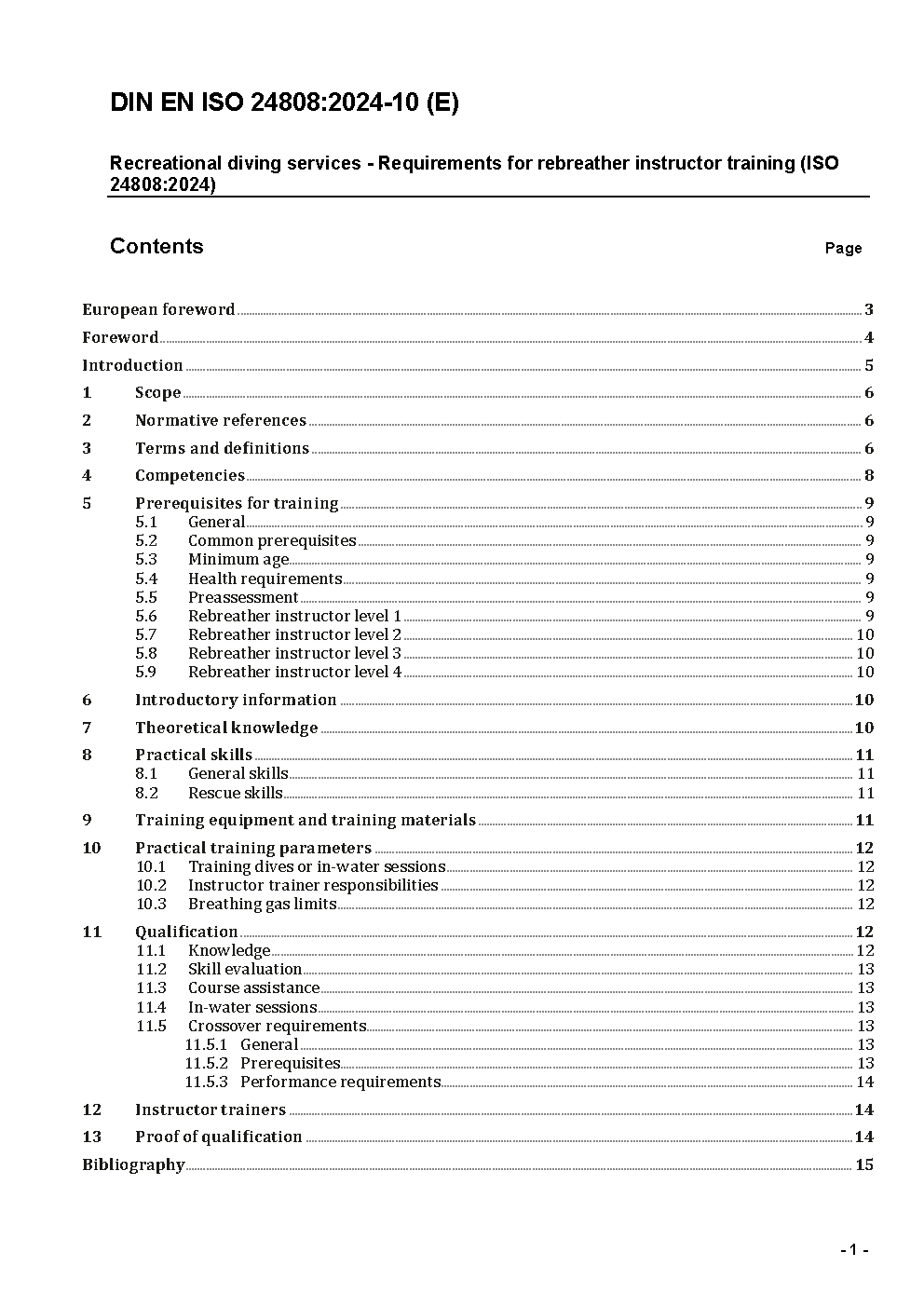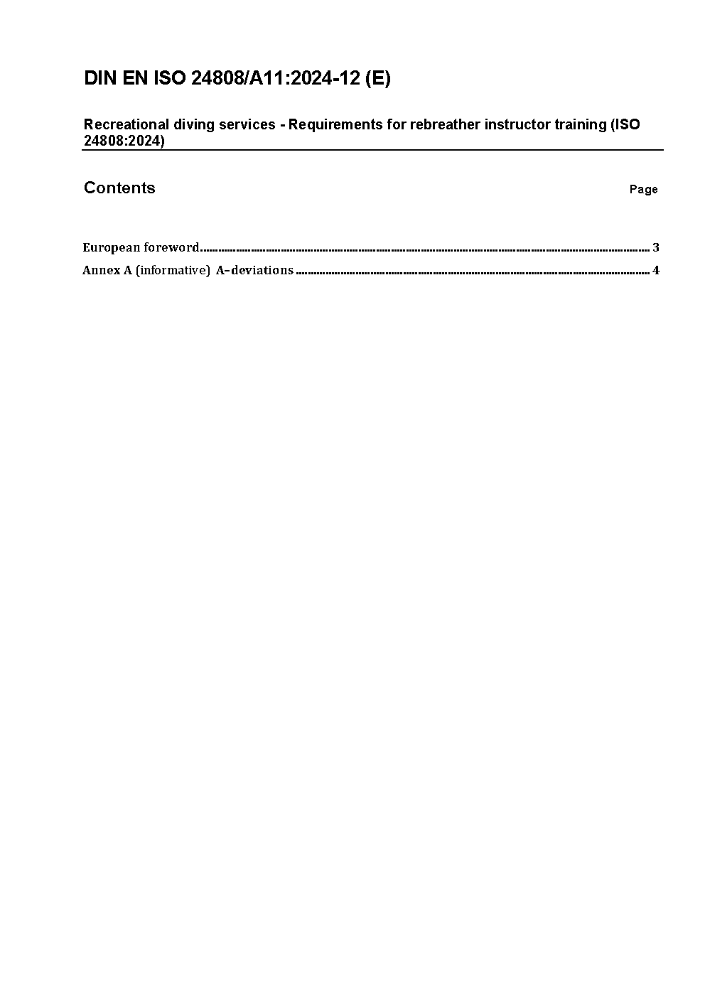 Recreational diving services - Requirements for rebreather instructor training (ISO 24808:2024); German version EN ISO 24808:2024/A11:2024