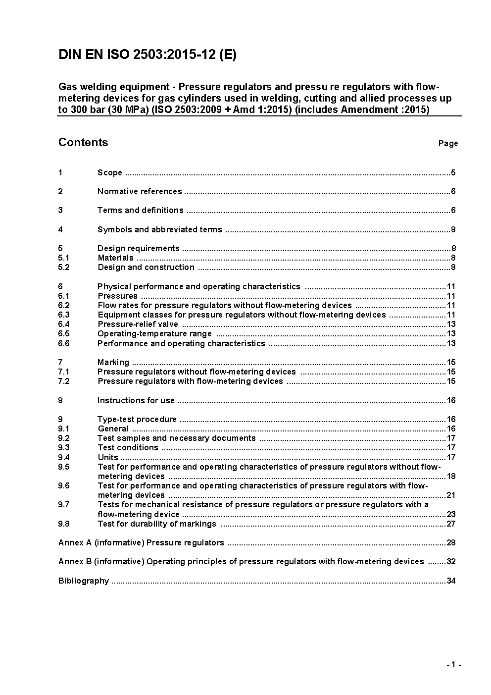 Gas welding equipment - Pressure regulators and pressure regulators with flow-metering devices for gas cylinders used in welding, cutting and allied processes up to 300 bar (30 MPa) (ISO 2503:2009); German version EN ISO 2503:2009