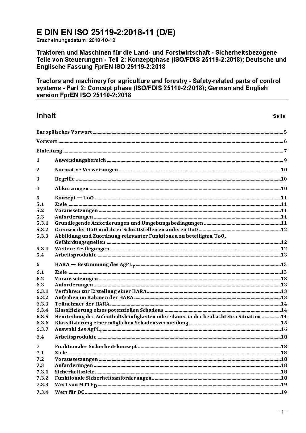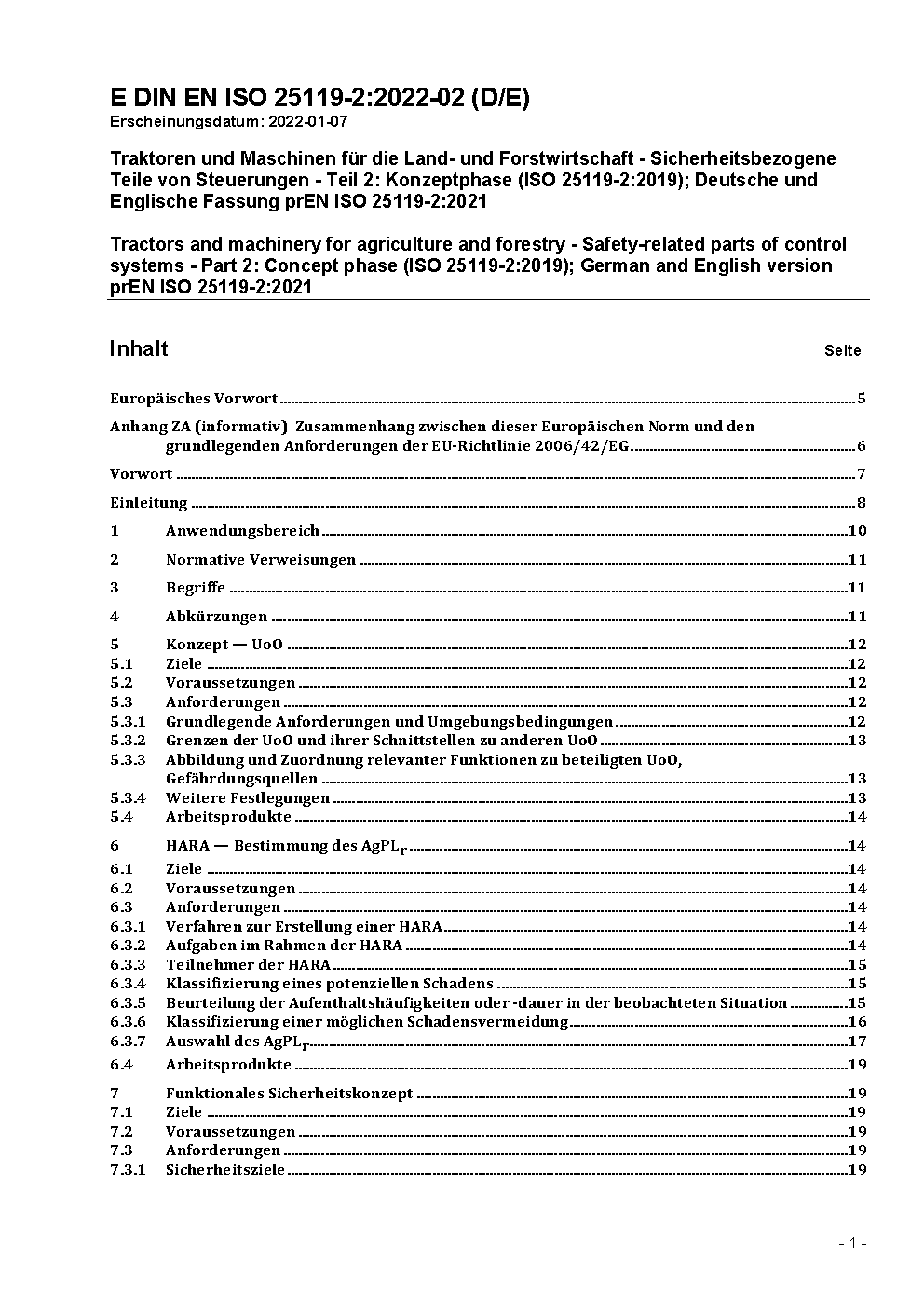 Tractors and machinery for agriculture and forestry - Safety-related parts of control systems - Part 2: Concept phase (ISO 25119-2:2019); German version EN ISO 25119-2:2023