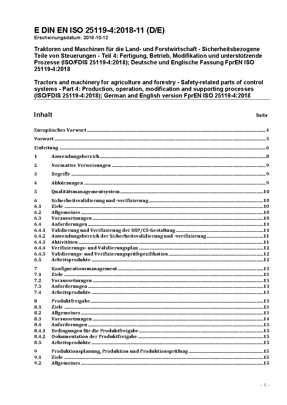 Tractors and machinery for agriculture and forestry - Safety-related parts of control systems - Part 4: Production, operation, modification and supporting processes (ISO 25119-4:2018); German and English version prEN ISO 25119-4:2021