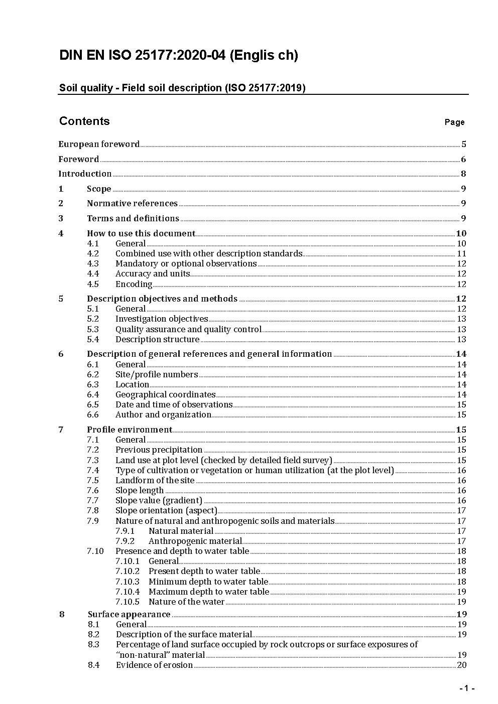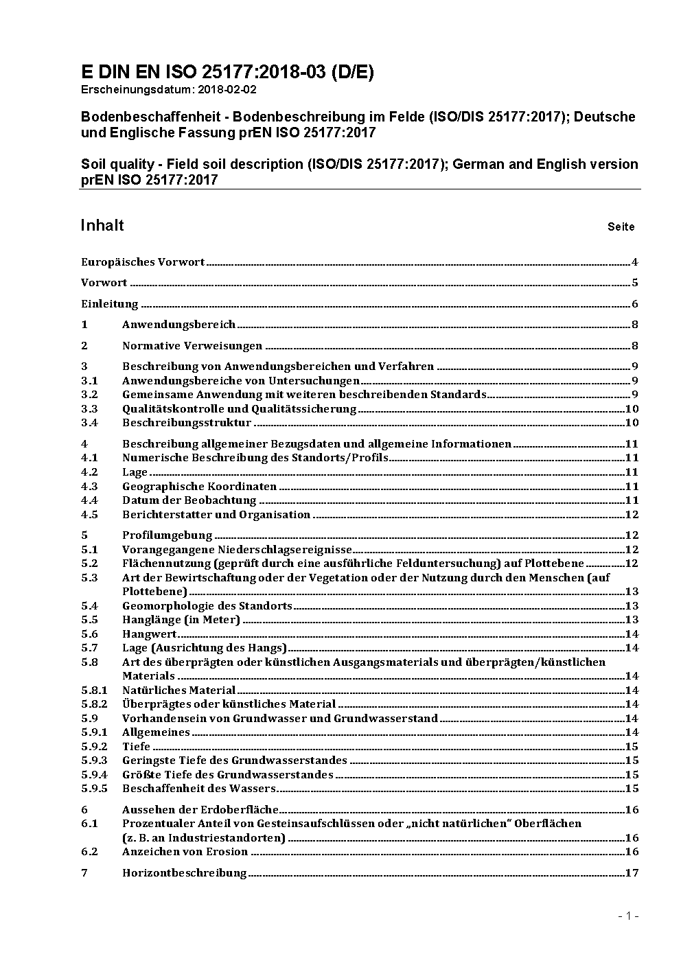 Soil quality - Field soil description (ISO/DIS 25177:2017); German and English version prEN ISO 25177:2017