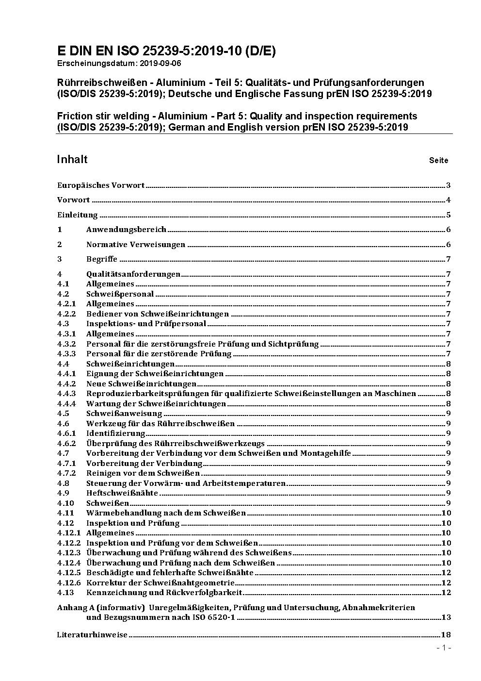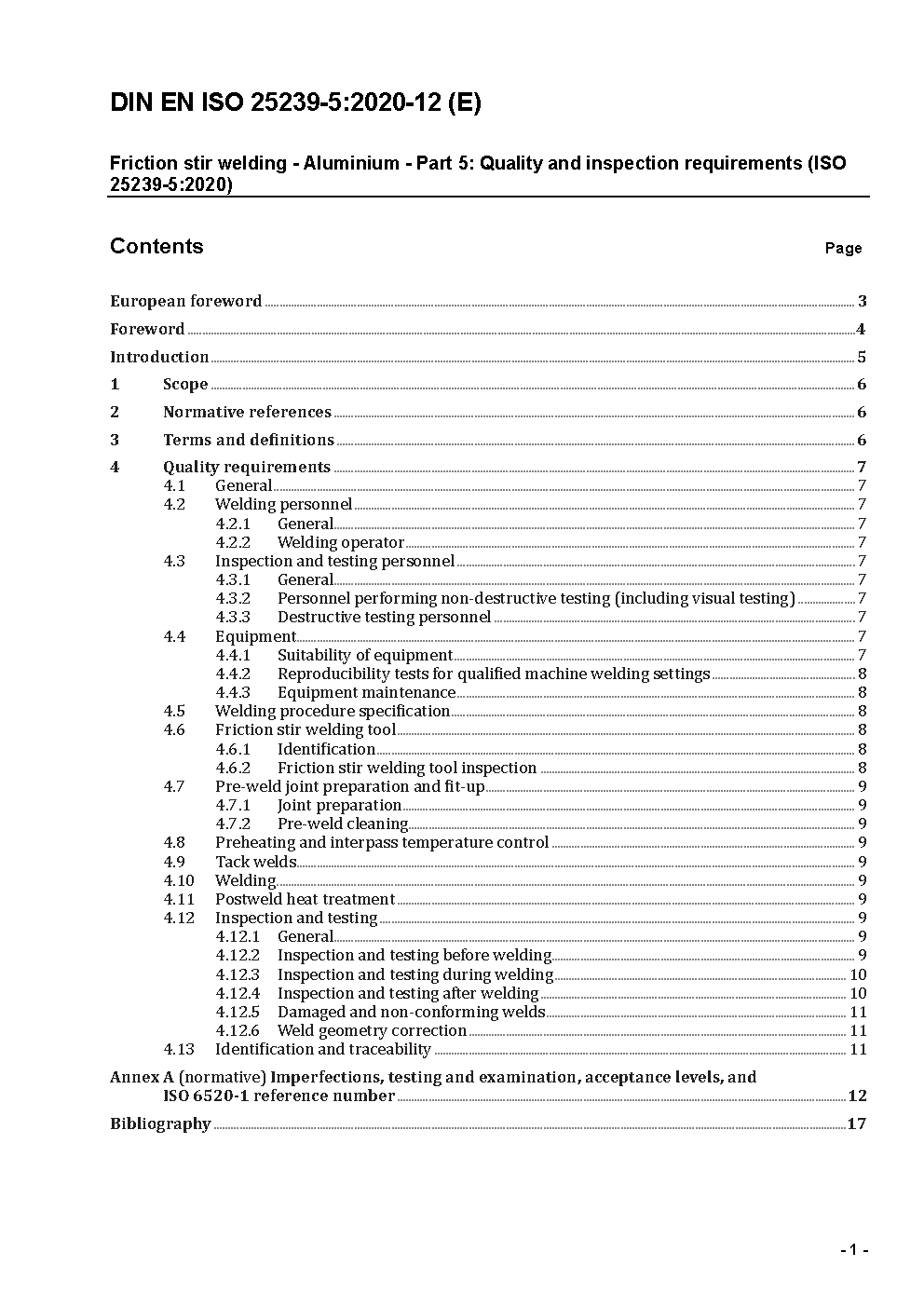 Friction stir welding - Aluminium - Part 5: Quality and inspection requirements (ISO 25239-5:2011); German version EN ISO 25239-5:2011
