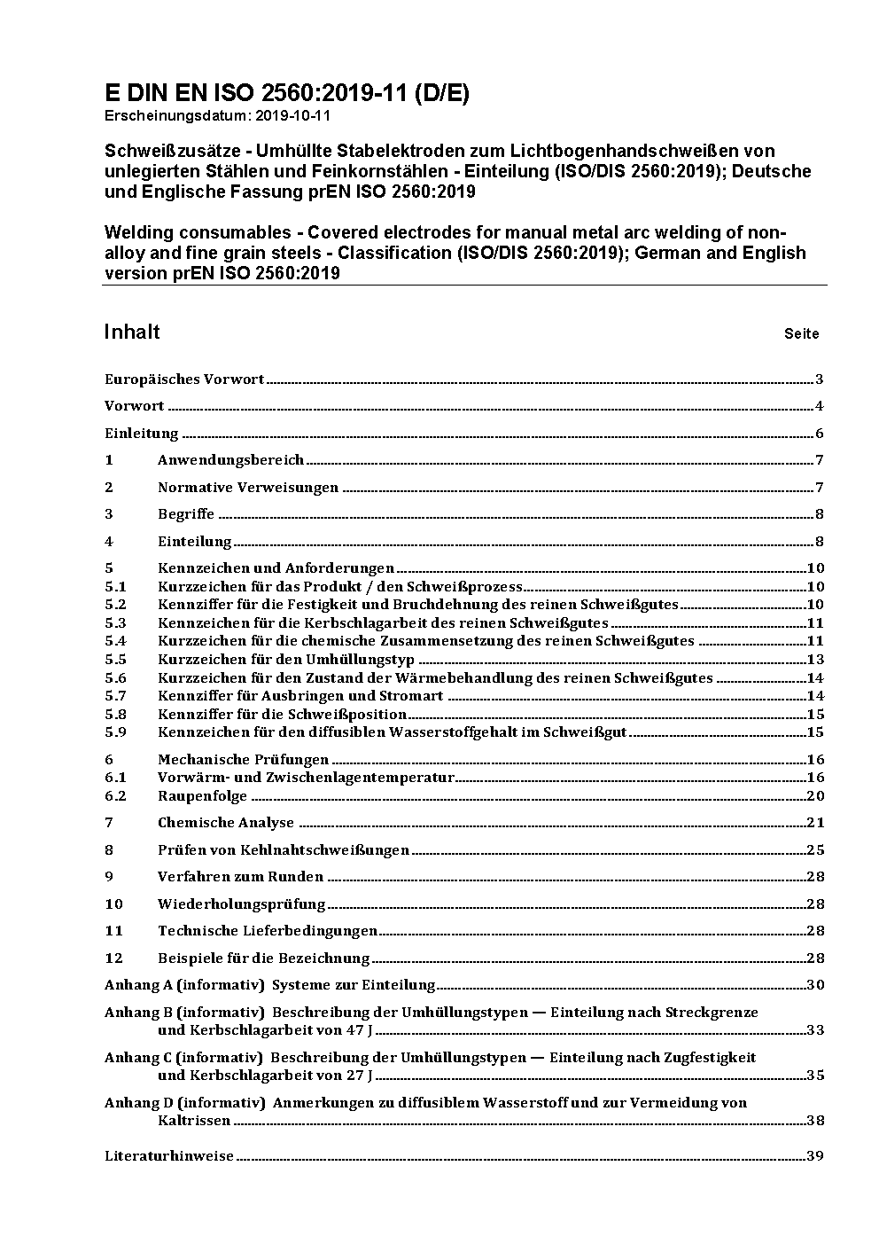 Schweißzusätze - Umhüllte Stabelektroden zum Lichtbogenhandschweißen von unlegierten Stählen und Feinkornstählen - Einteilung (ISO 2560:2009); Deutsche Fassung EN ISO 2560:2009