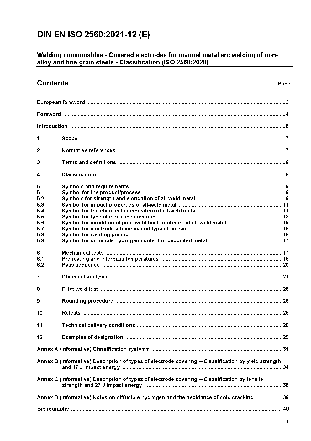 Welding consumables - Covered electrodes for manual metal arc welding of non-alloy and fine grain steels - Classification (ISO 2560:2009); German version EN ISO 2560:2009