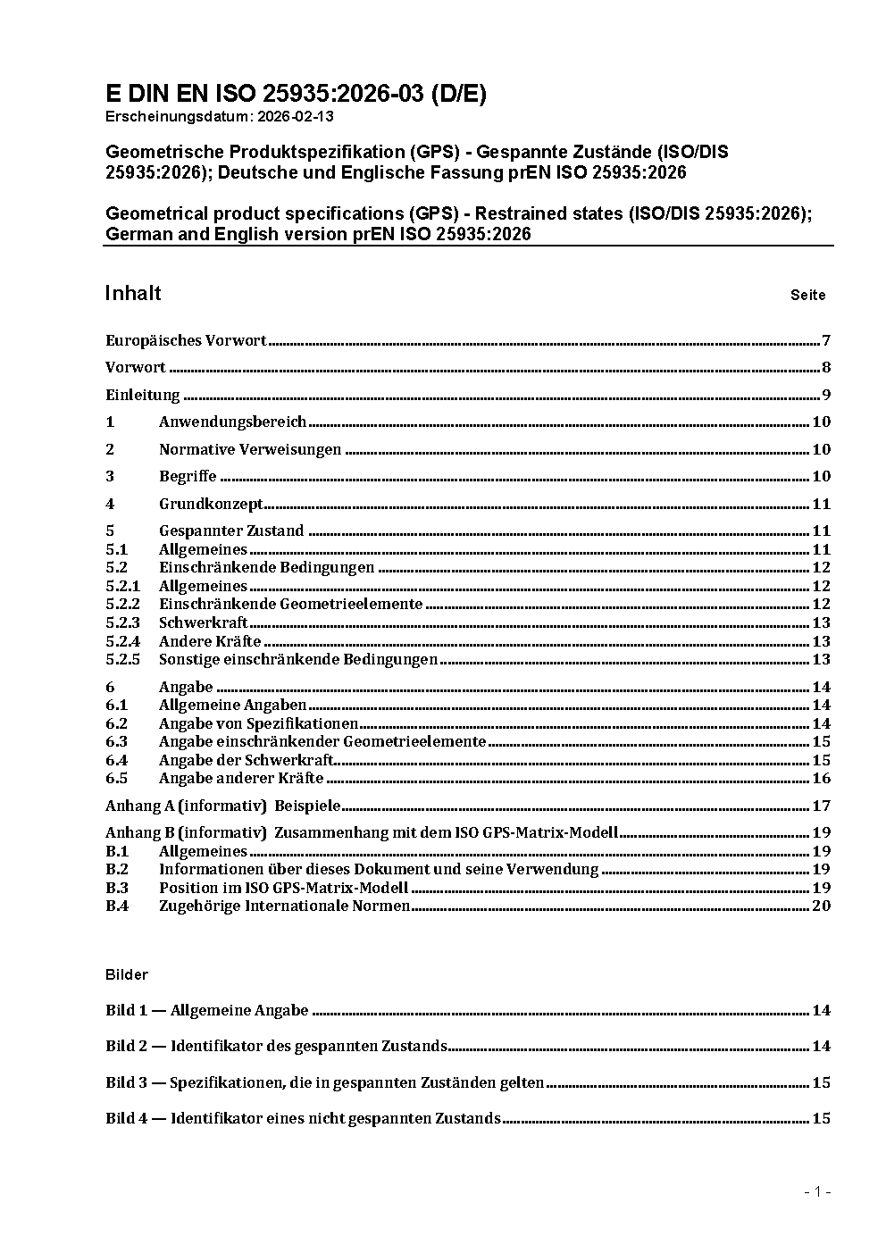 Geometrische Produktspezifikation (GPS) - Gespannte Zustände (ISO/DIS 25935:2026); Deutsche und Englische Fassung prEN ISO 25935:2026