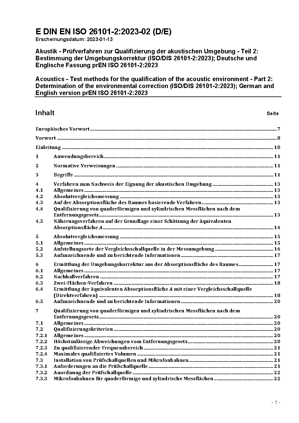Akustik - Prüfverfahren zur Qualifizierung der akustischen Umgebung - Teil 2: Bestimmung der Umgebungskorrektur (ISO/DIS 26101-2:2023); Deutsche und Englische Fassung prEN ISO 26101-2:2023