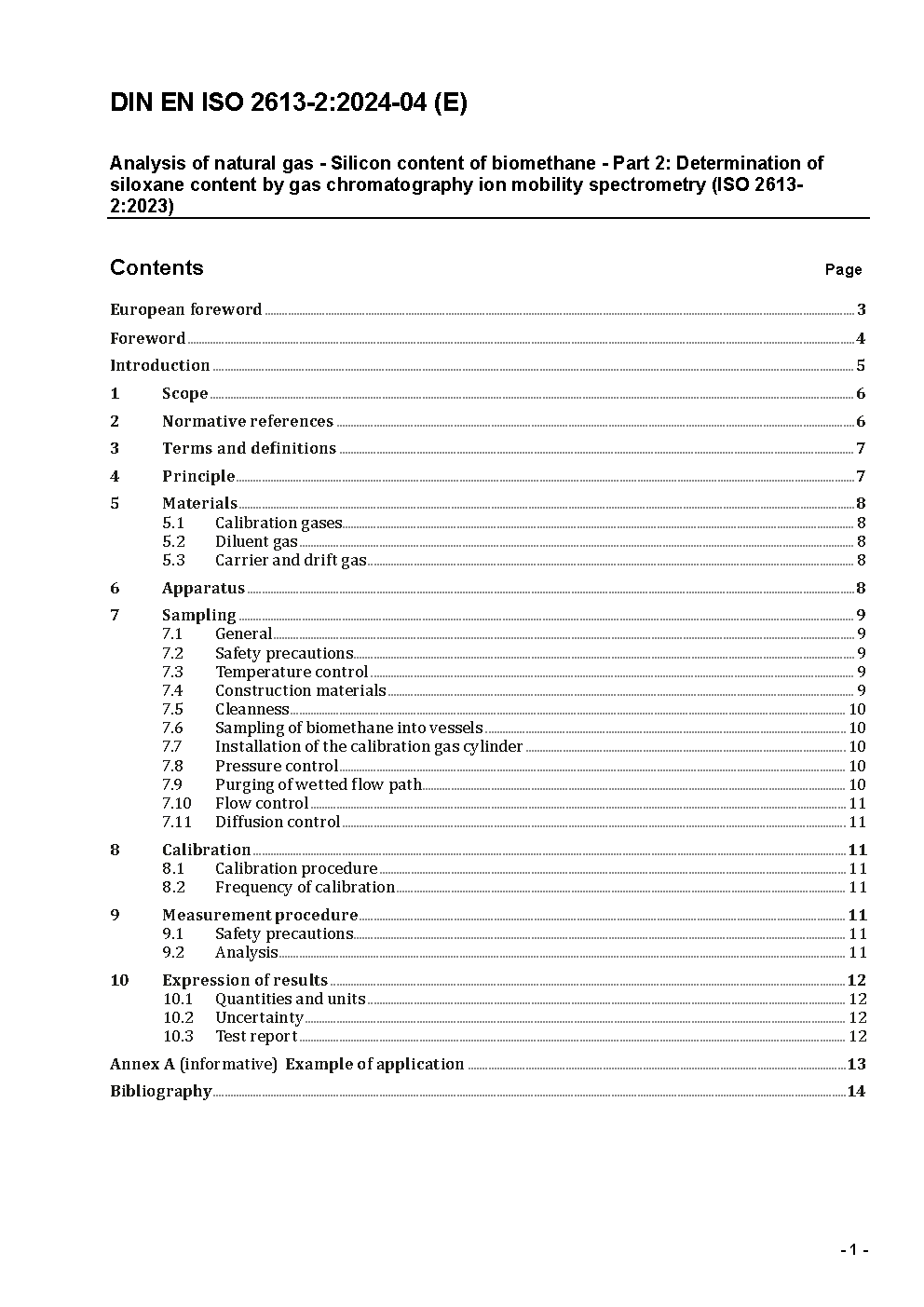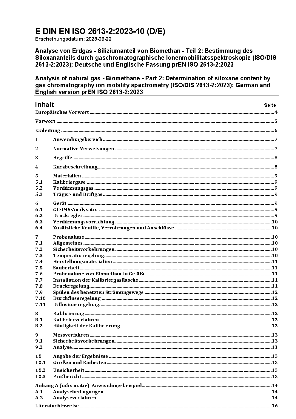 Analysis of natural gas - Silicon content of biomethane - Part 2: Determination of siloxane content by gas chromatography ion mobility spectrometry (ISO 2613-2:2023); German version EN ISO 2613-2:2023