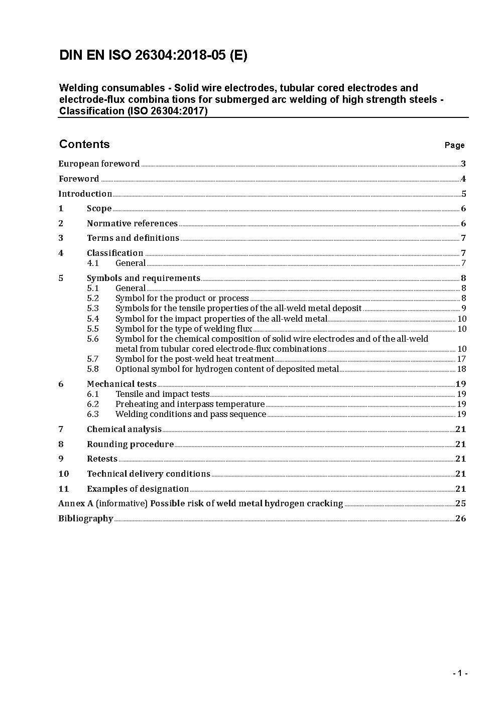 Welding consumables - Solid wire electrodes, tubular cored electrodes and electrode-flux combinations for submerged arc welding of high strength steels - Classification (ISO/DIS 26304:2017); German and English version prEN ISO 26304:2017