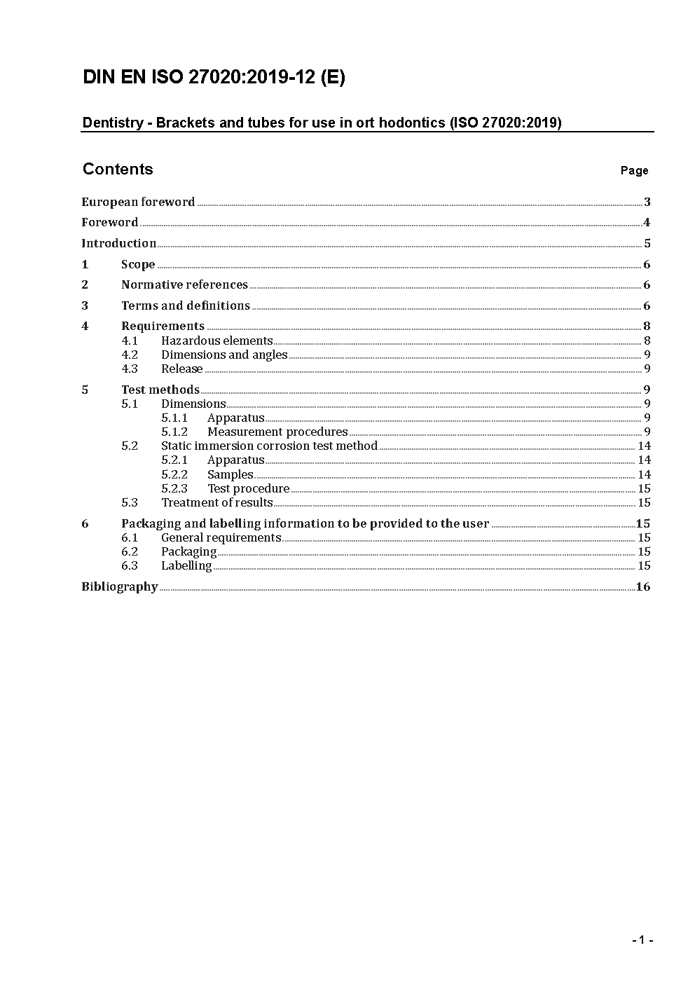 Dentistry - Brackets and tubes for use in orthodontics (ISO 27020:2010); German version EN ISO 27020:2010