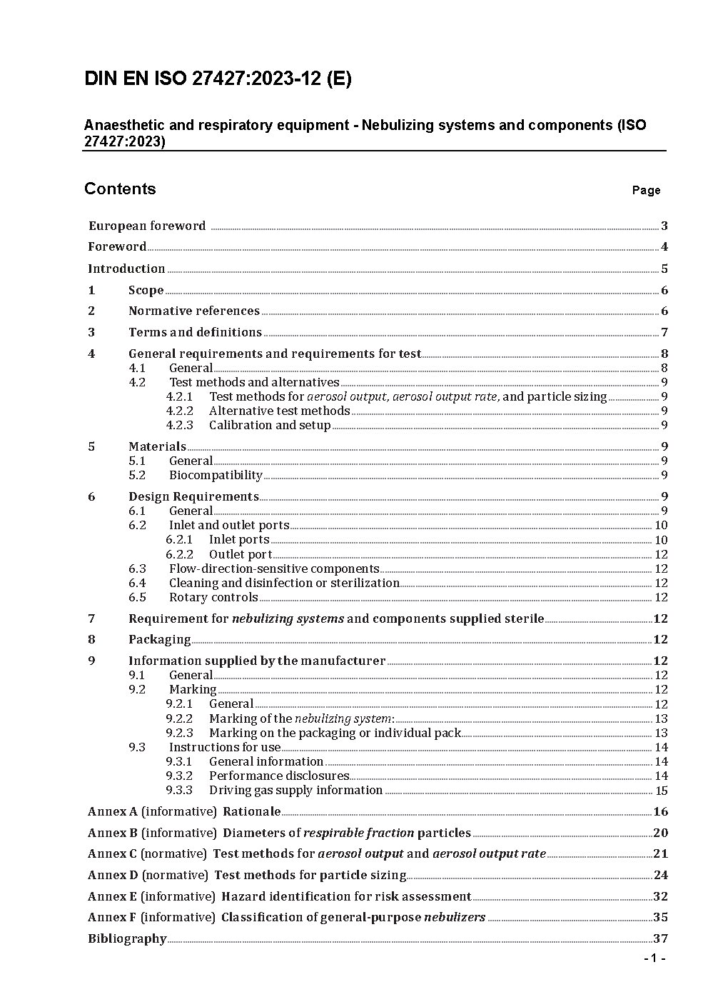 Anaesthetic and respiratory equipment - Nebulizing systems and components (ISO 27427:2023); German version EN ISO 27427:2023