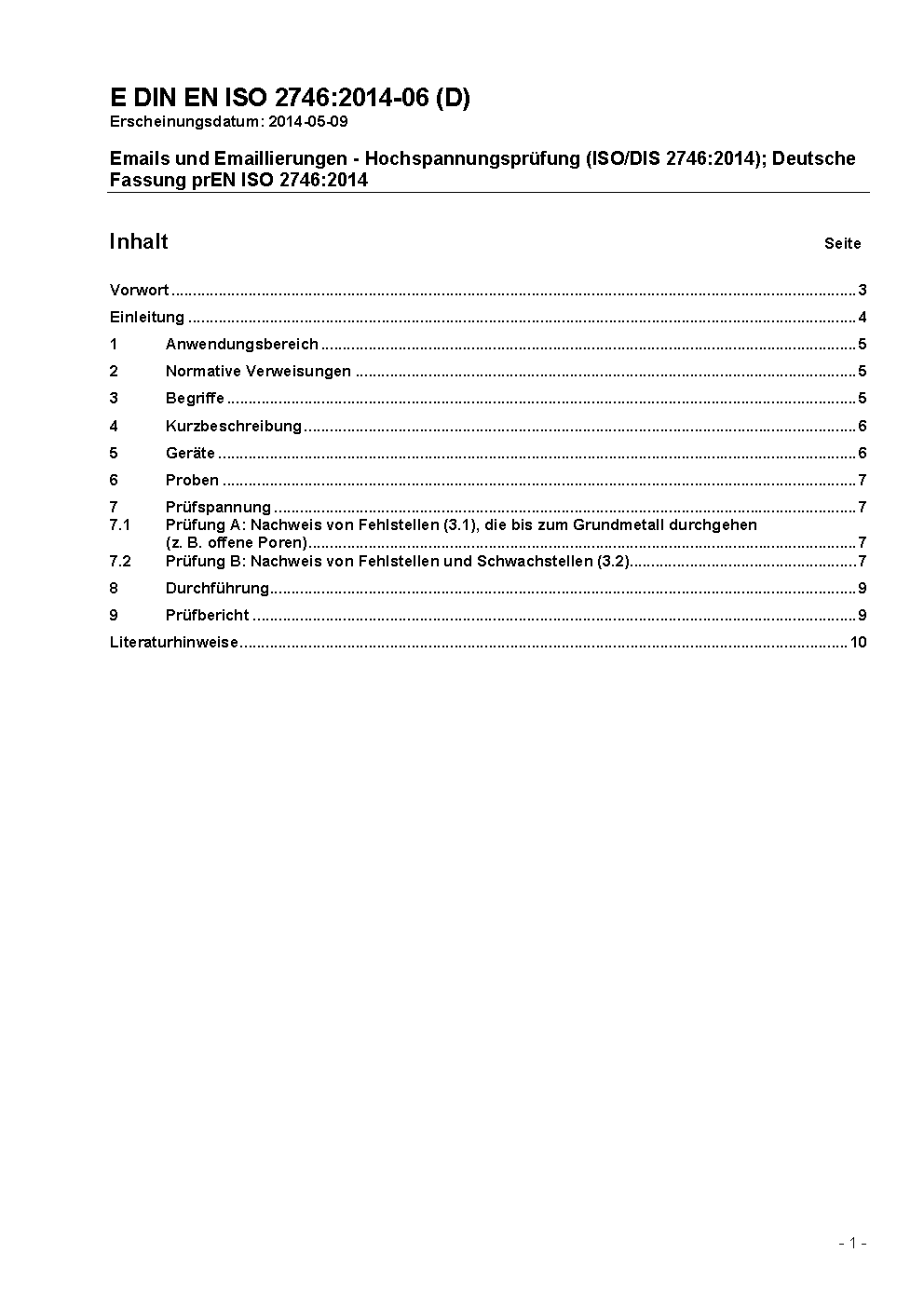 Emails und Emaillierungen - Hochspannungsprüfung (ISO 2746:2015); Deutsche Fassung EN ISO 2746:2015