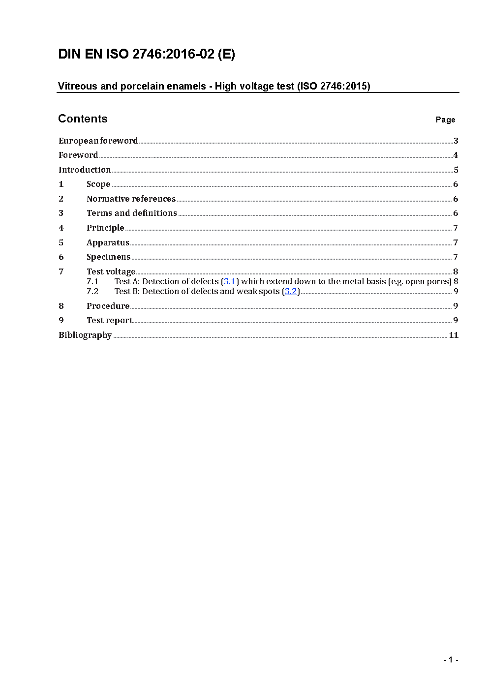 Vitreous and porcelain enamels - High voltage test (ISO 2746:2015); German version EN ISO 2746:2015