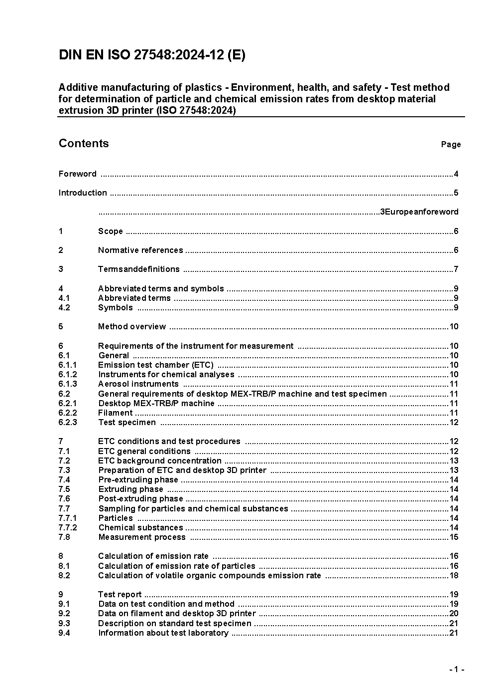 Additive manufacturing of plastics - Environment, health, and safety - Test method for determination of particle and chemical emission rates from desktop material extrusion 3D printer (ISO/DIS 27548:2023); German and English version prEN ISO 27548:2023