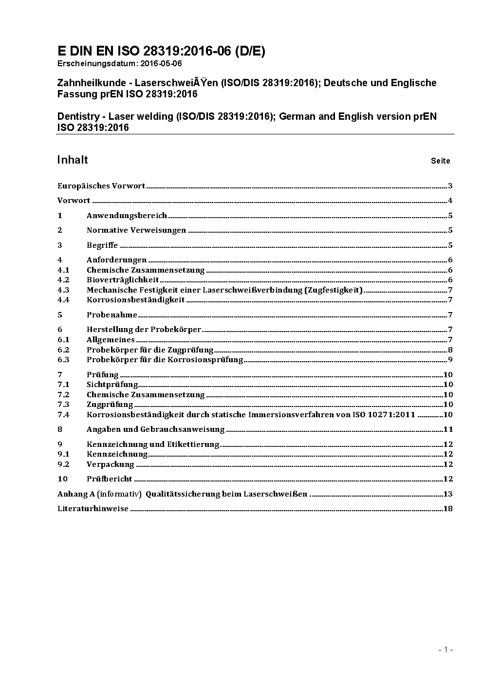 Dentistry - Laser welding (ISO 28319:2010); German version EN ISO 28319:2010
