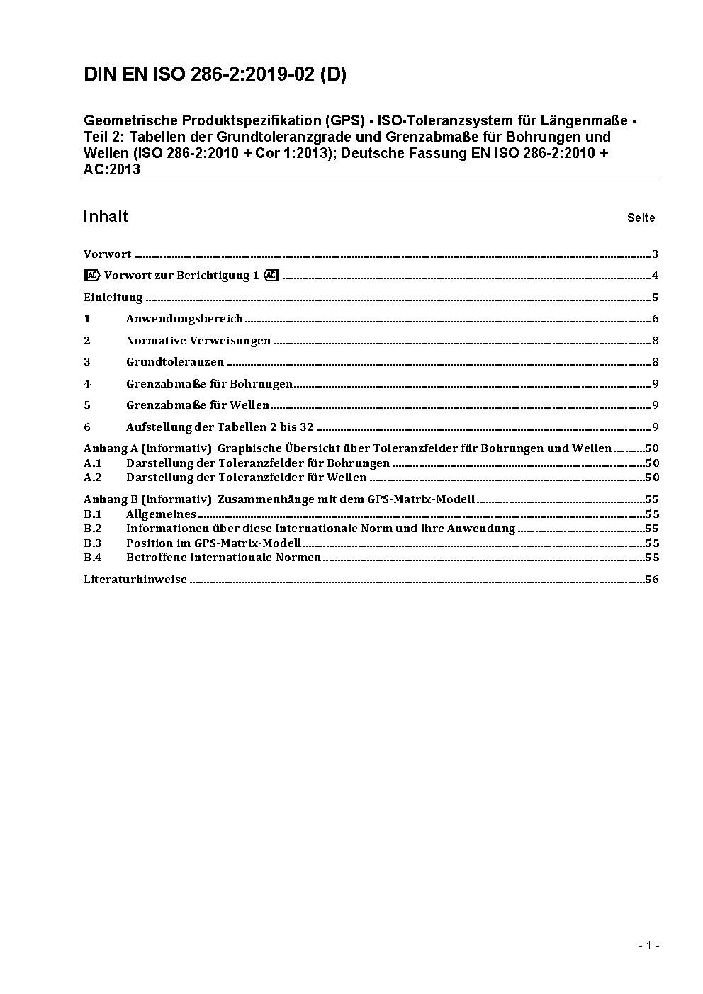 Geometrische Produktspezifikation (GPS) - ISO-Toleranzsystem für Längenmaße - Teil 2: Tabellen der Grundtoleranzgrade und Grenzabmaße für Bohrungen und Wellen (ISO 286-2:2010 + Cor 1:2013); Deutsche Fassung EN ISO 286-2:2010 + AC:2013