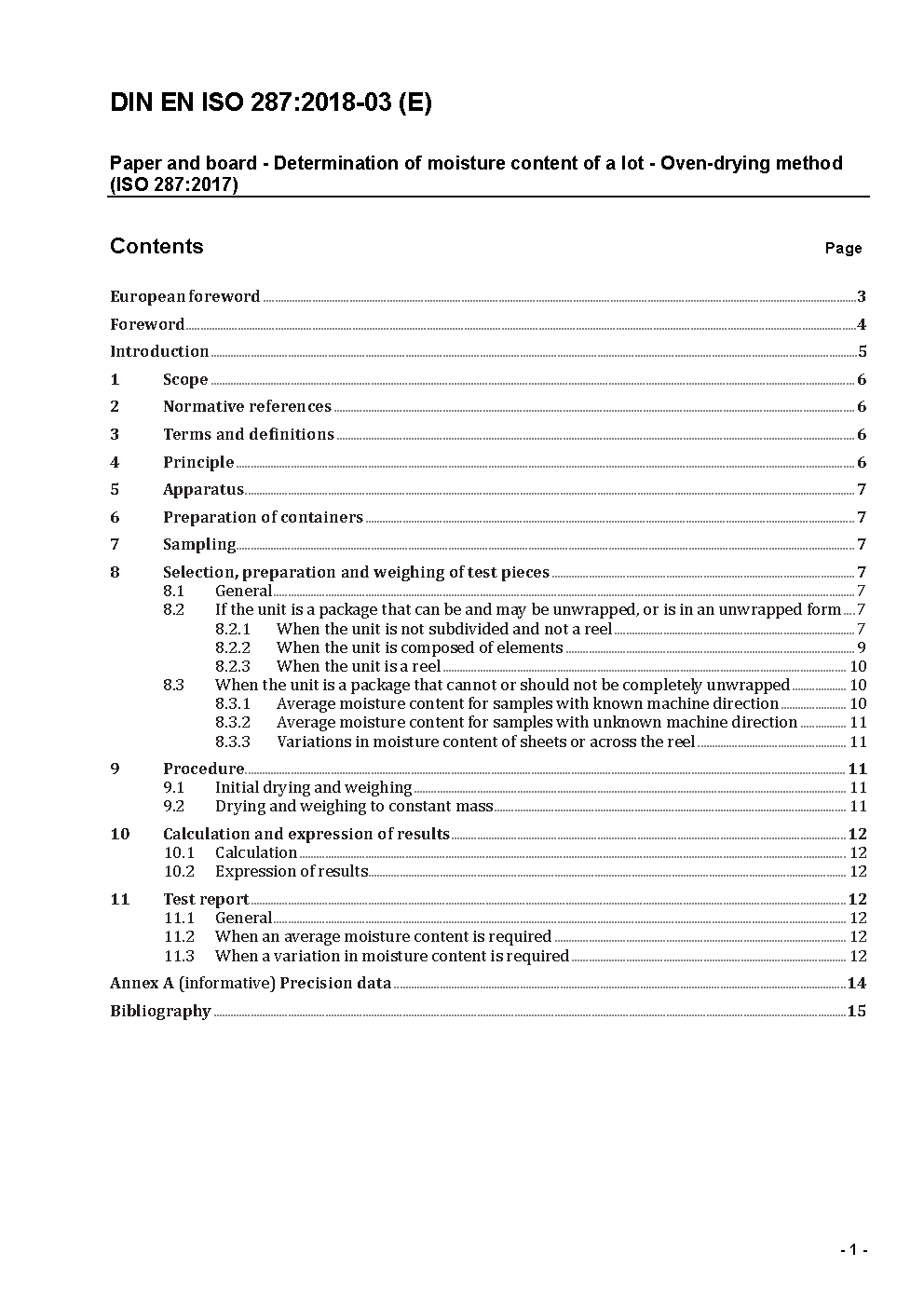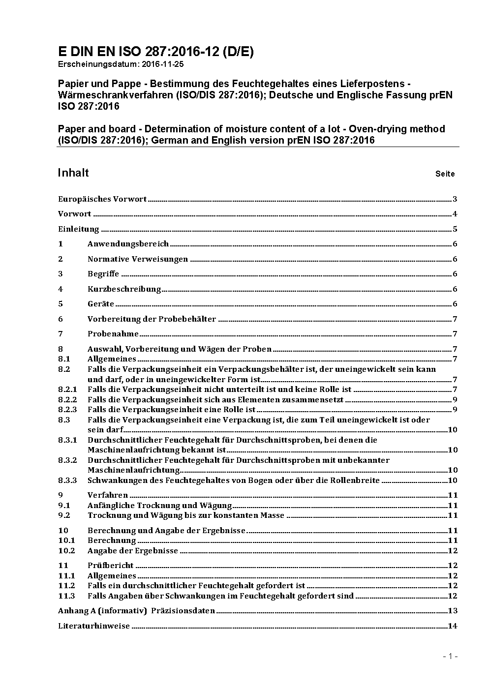 Paper and board - Determination of moisture content of a lot - Oven-drying method (ISO 287:2009); German version EN ISO 287:2009