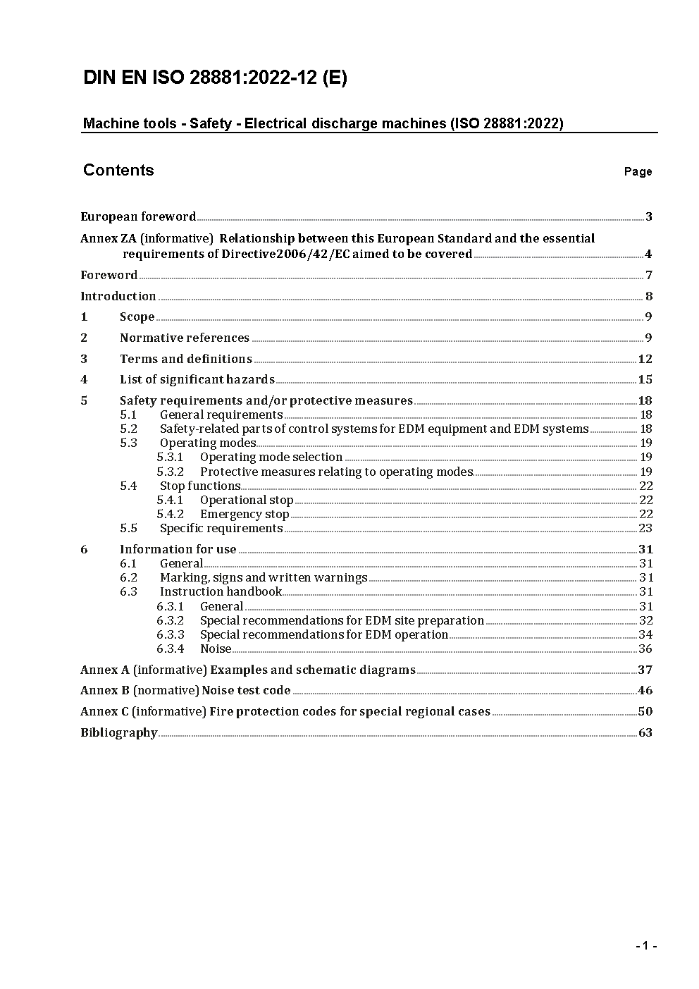 Machine tools - Safety - Electrical discharge machines (ISO/DIS 28881:2019); German and English version prEN ISO 28881:2019