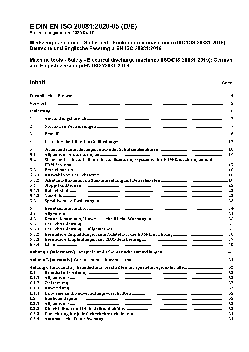 Machine tools - Safety - Electrical discharge machines (ISO 28881:2022); German version EN ISO 28881:2022