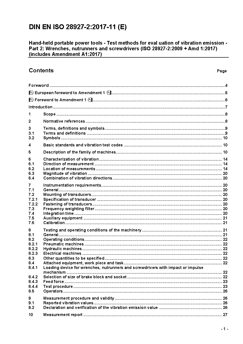 Hand-held portable power tools - Test methods for evaluation of vibration emission - Part 2: Wrenches, nut runners and screwdrivers (ISO/DIS 28927-2:2008); German version prEN ISO 28927-2:2008