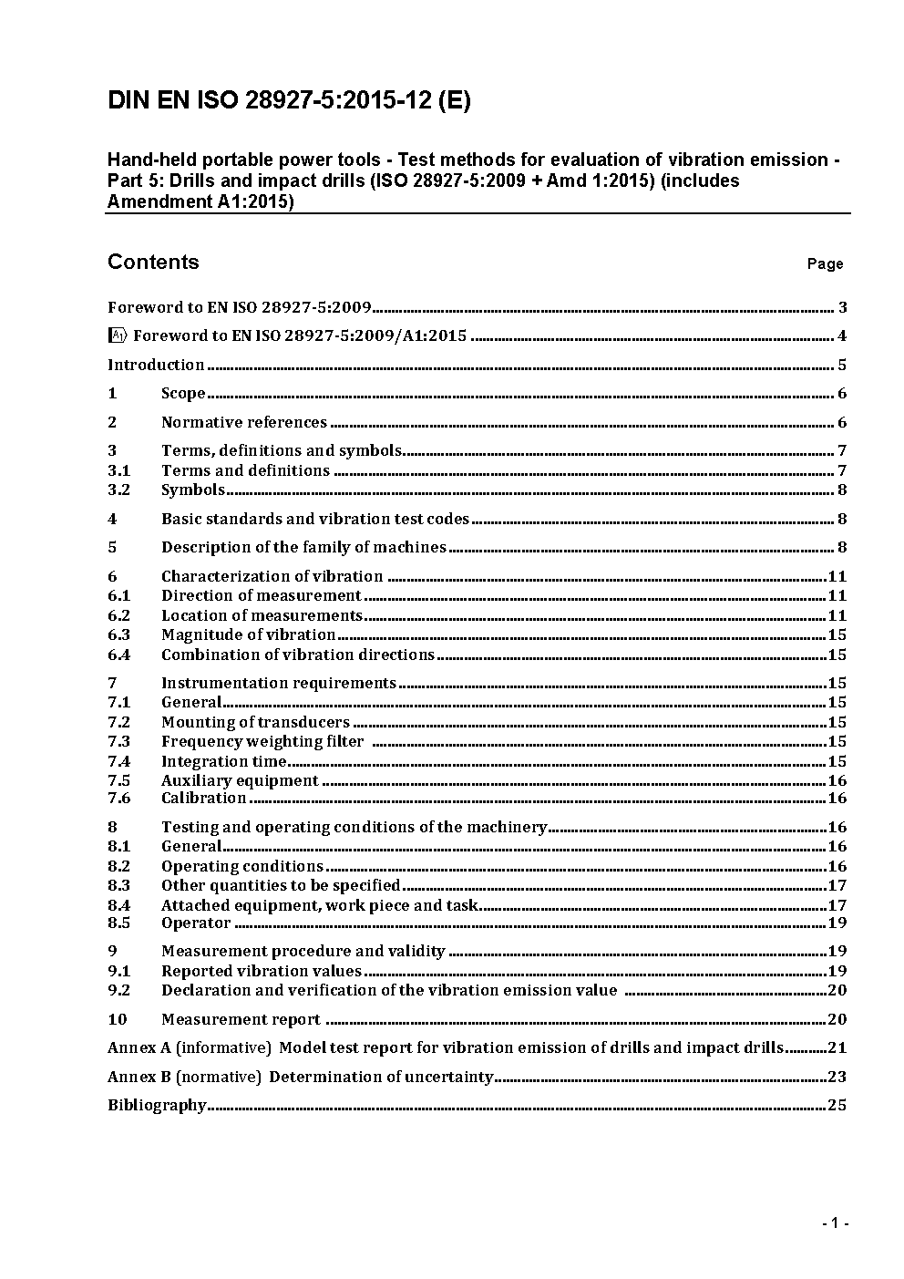 Hand-held portable power tools - Test methods for evaluation of vibration emission - Part 5: Drills and impact drills (ISO 28927-5:2009 + Amd 1:2015); German version EN ISO 28927-5:2009 + A1:2015