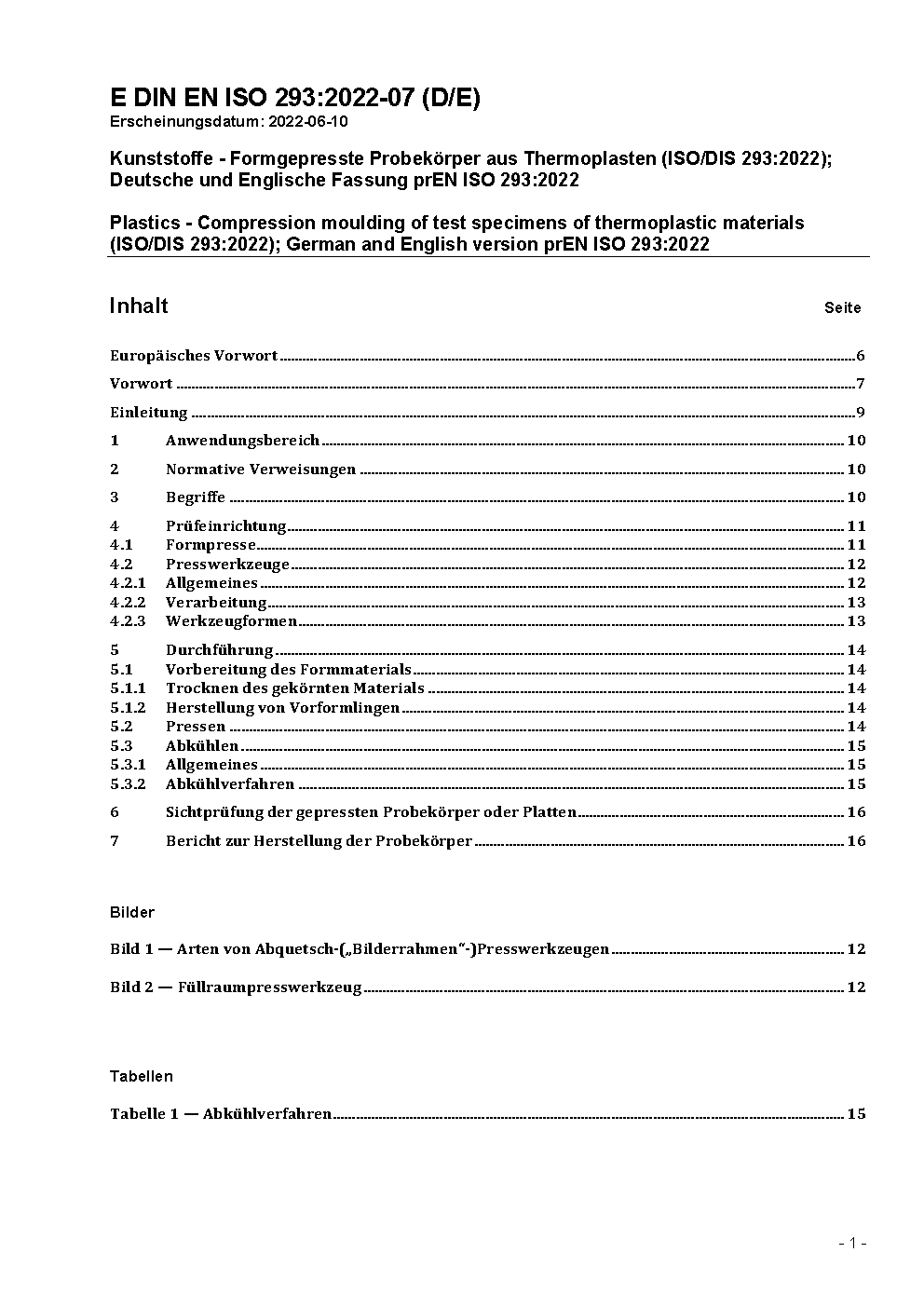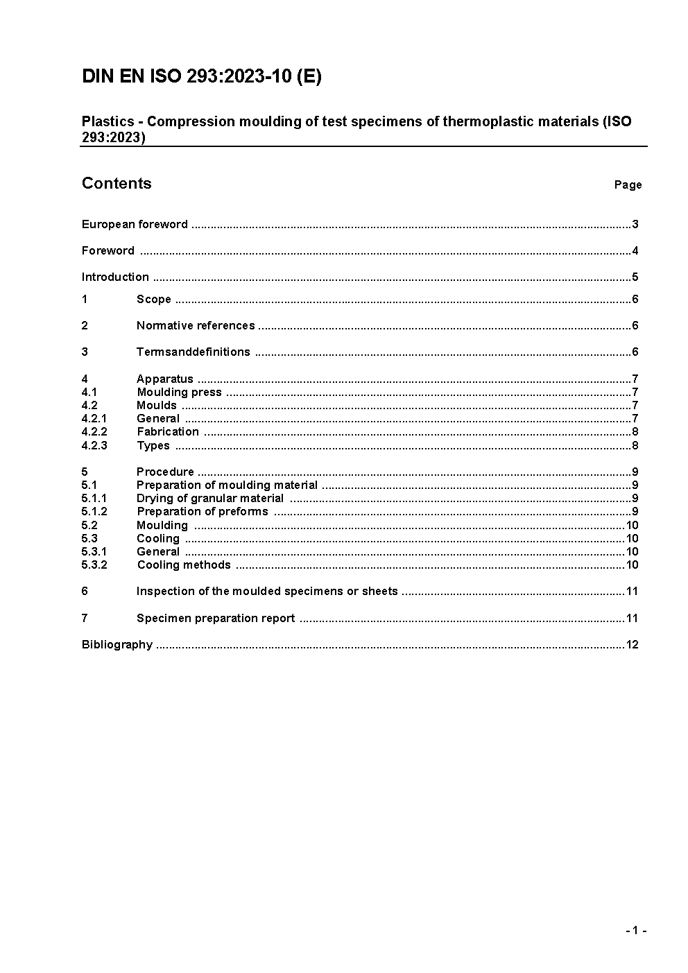 Plastics - Compression moulding of test specimens of thermoplastic materials (ISO 293:2023); German version EN ISO 293:2023